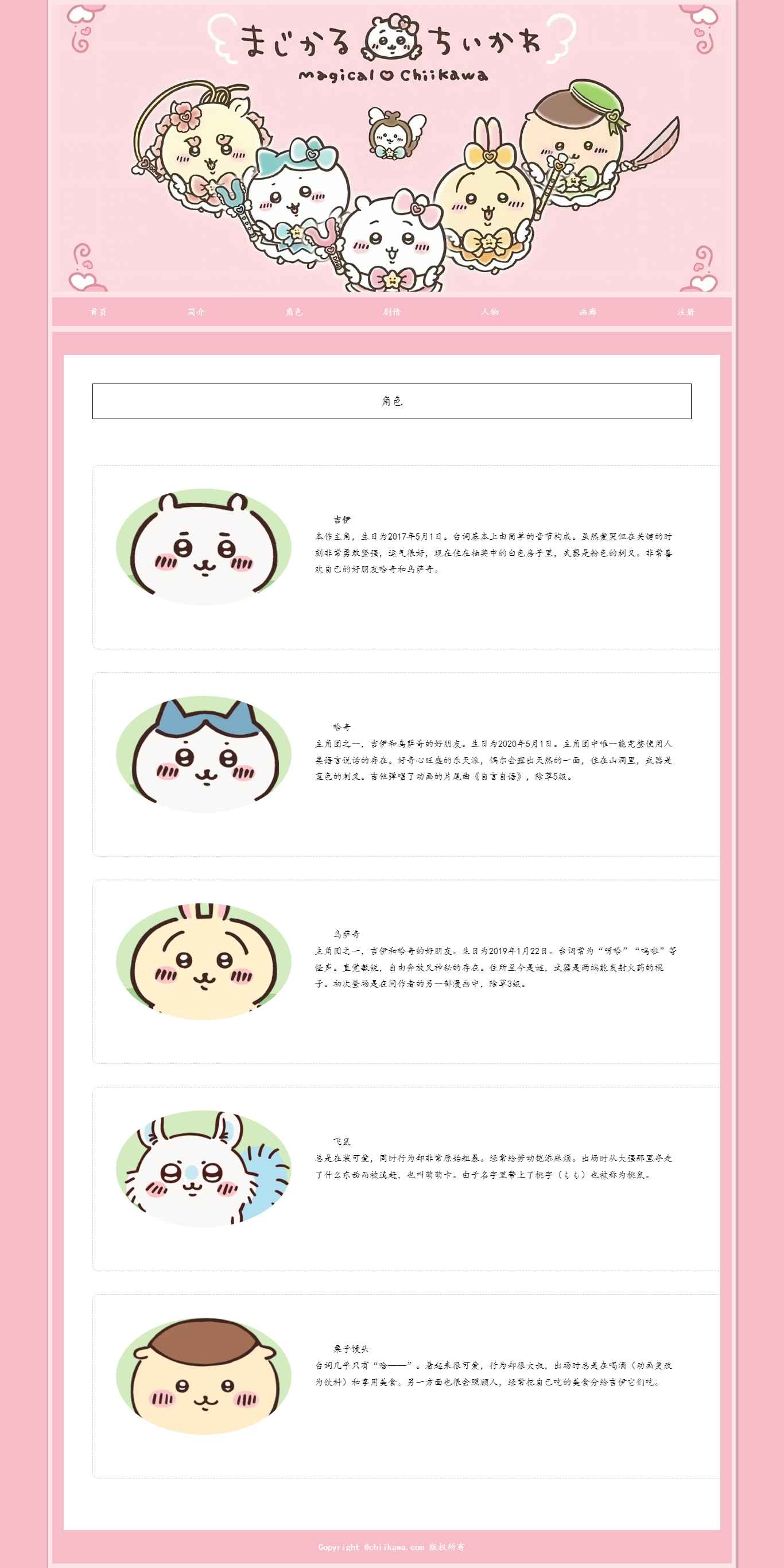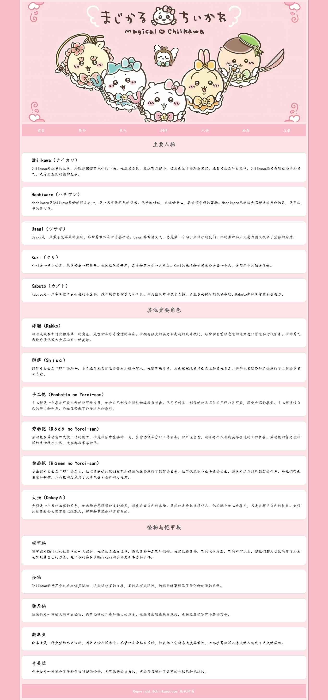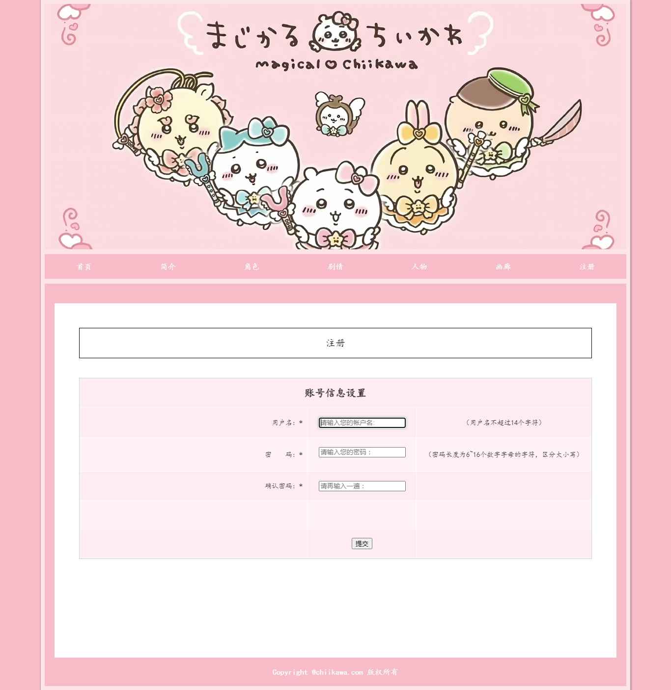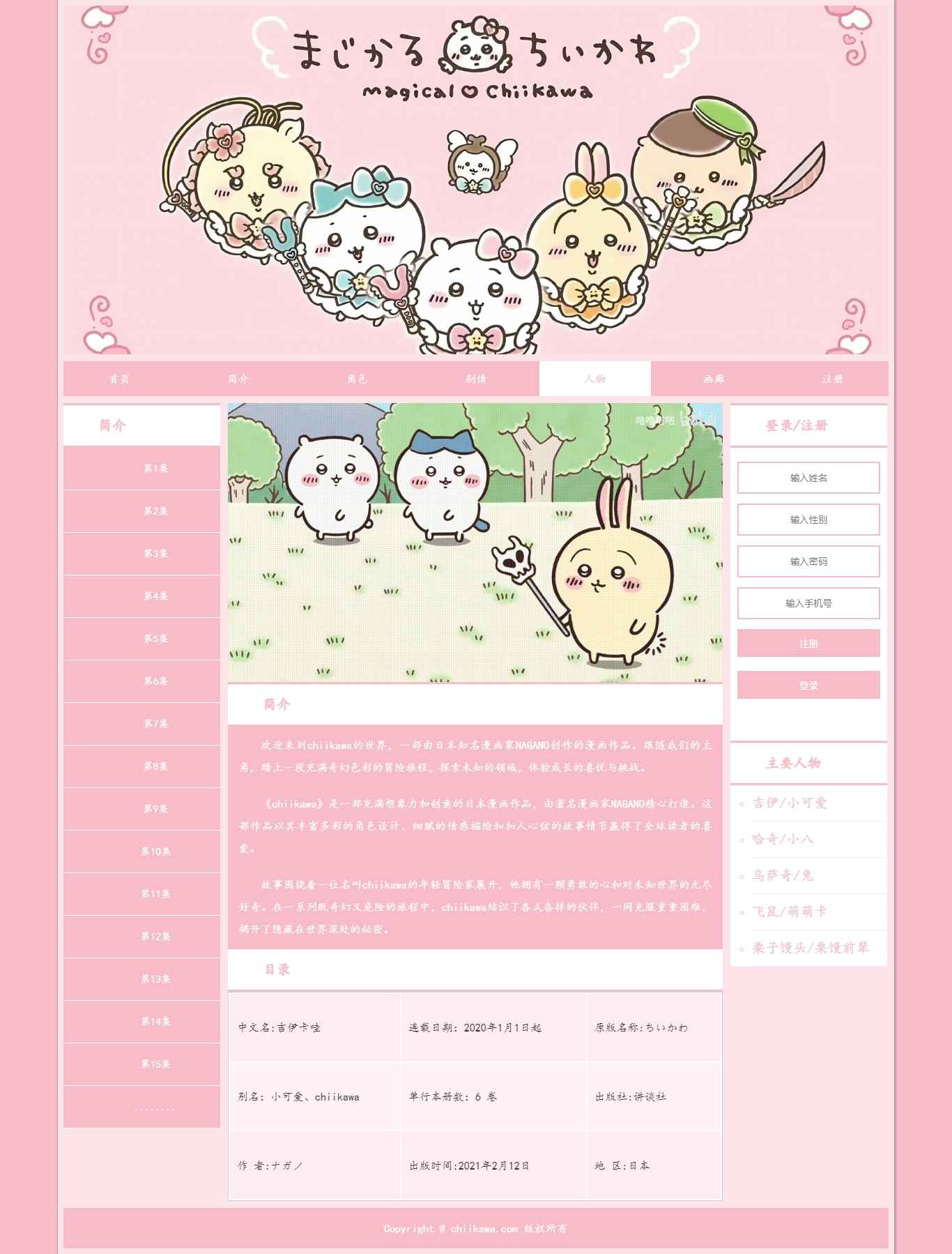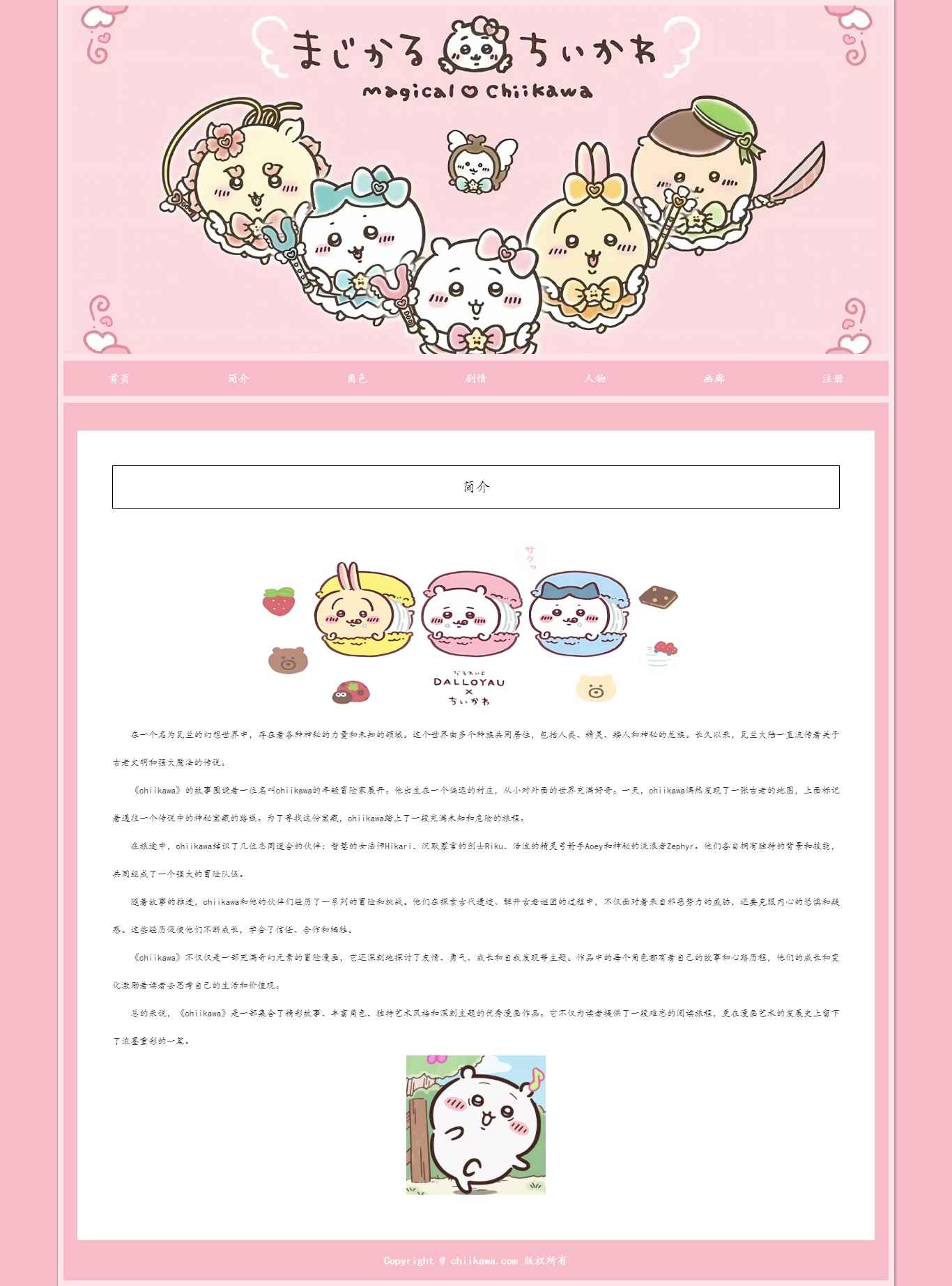 编号:2891 chiikawa动漫网站 7页 动图 注册表单 30元 css布局