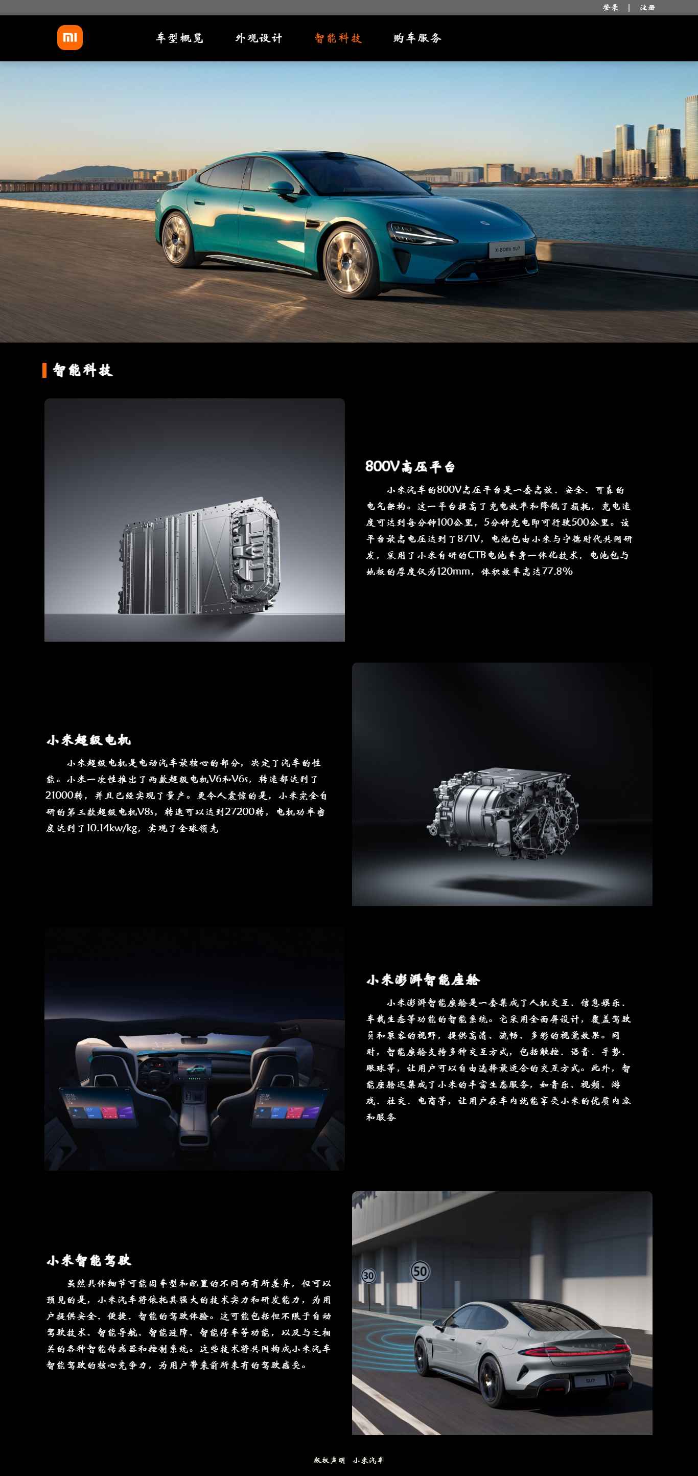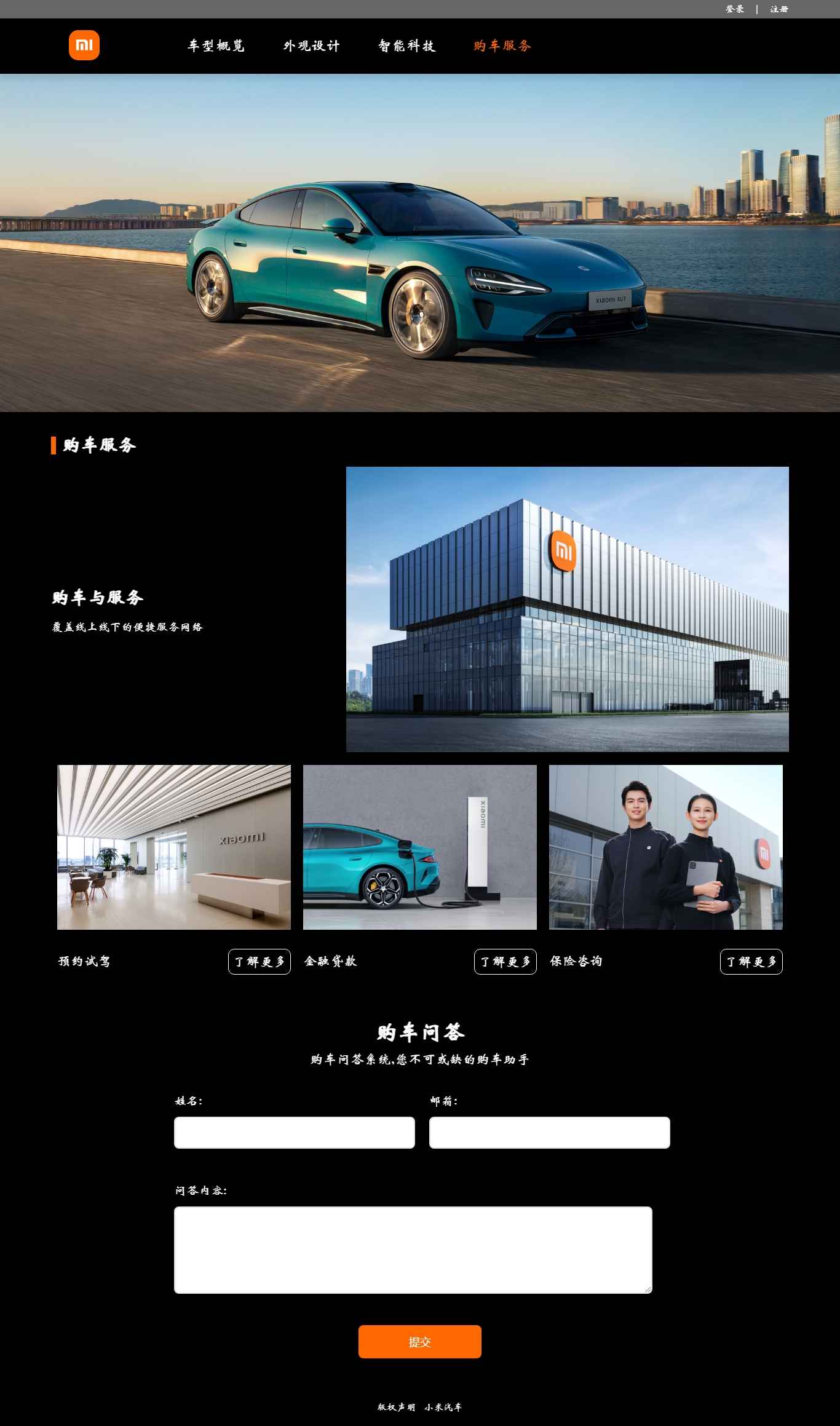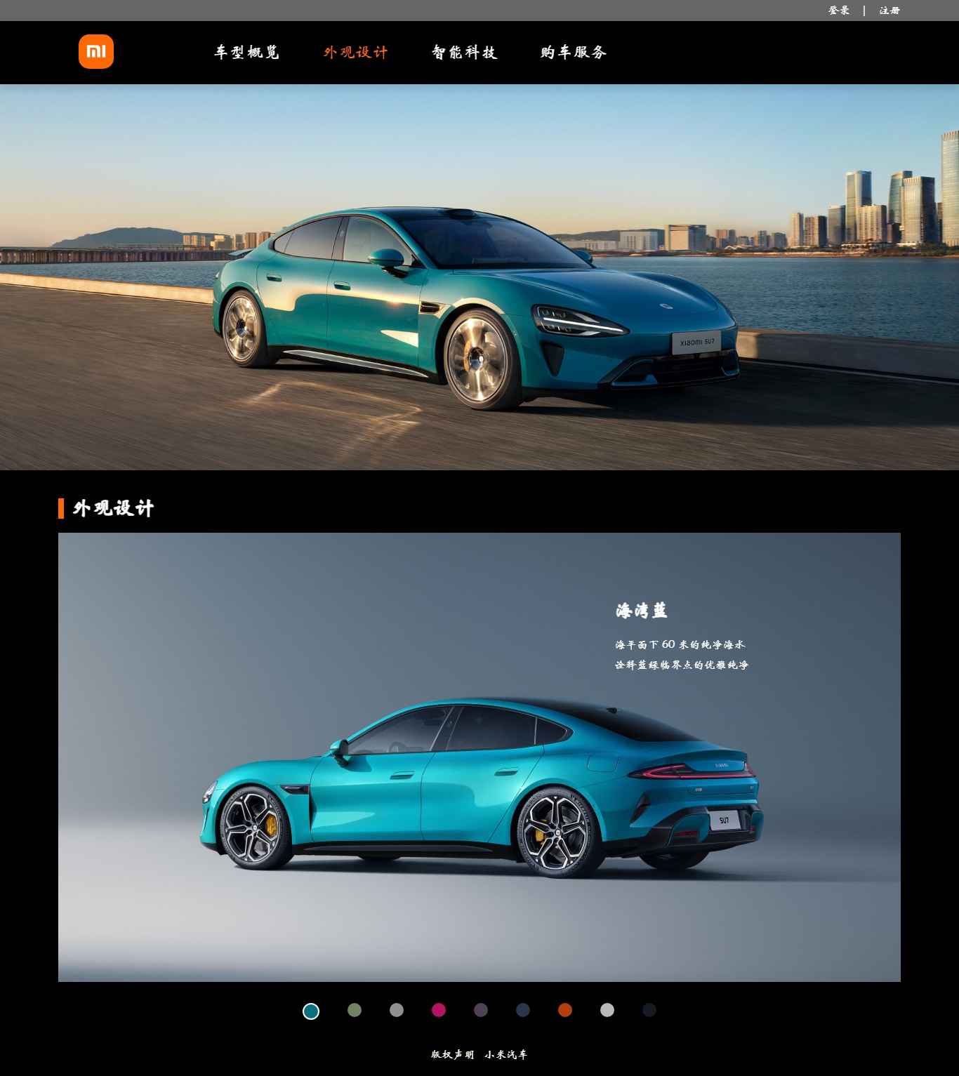 编号:2904 小米汽车 7页 图片切换 鼠标经过特效 登录 注册 30元 css布局