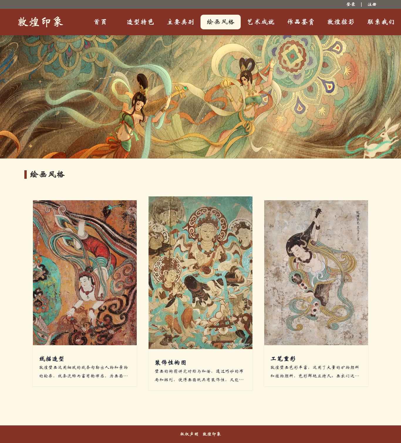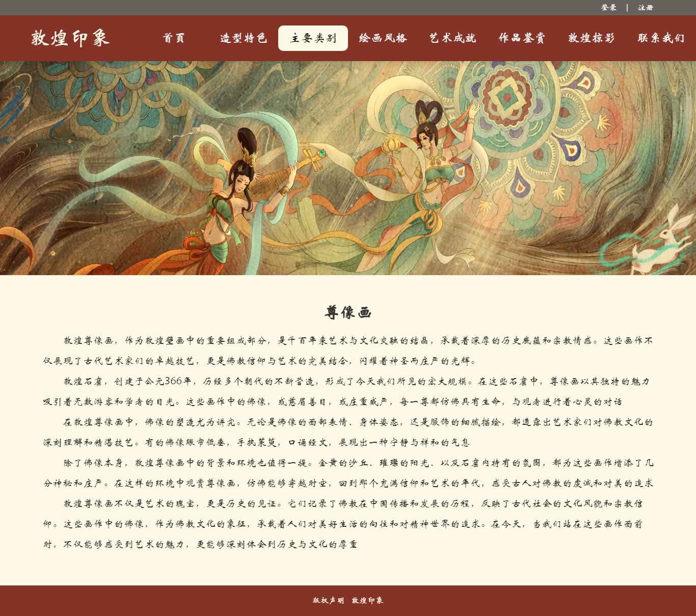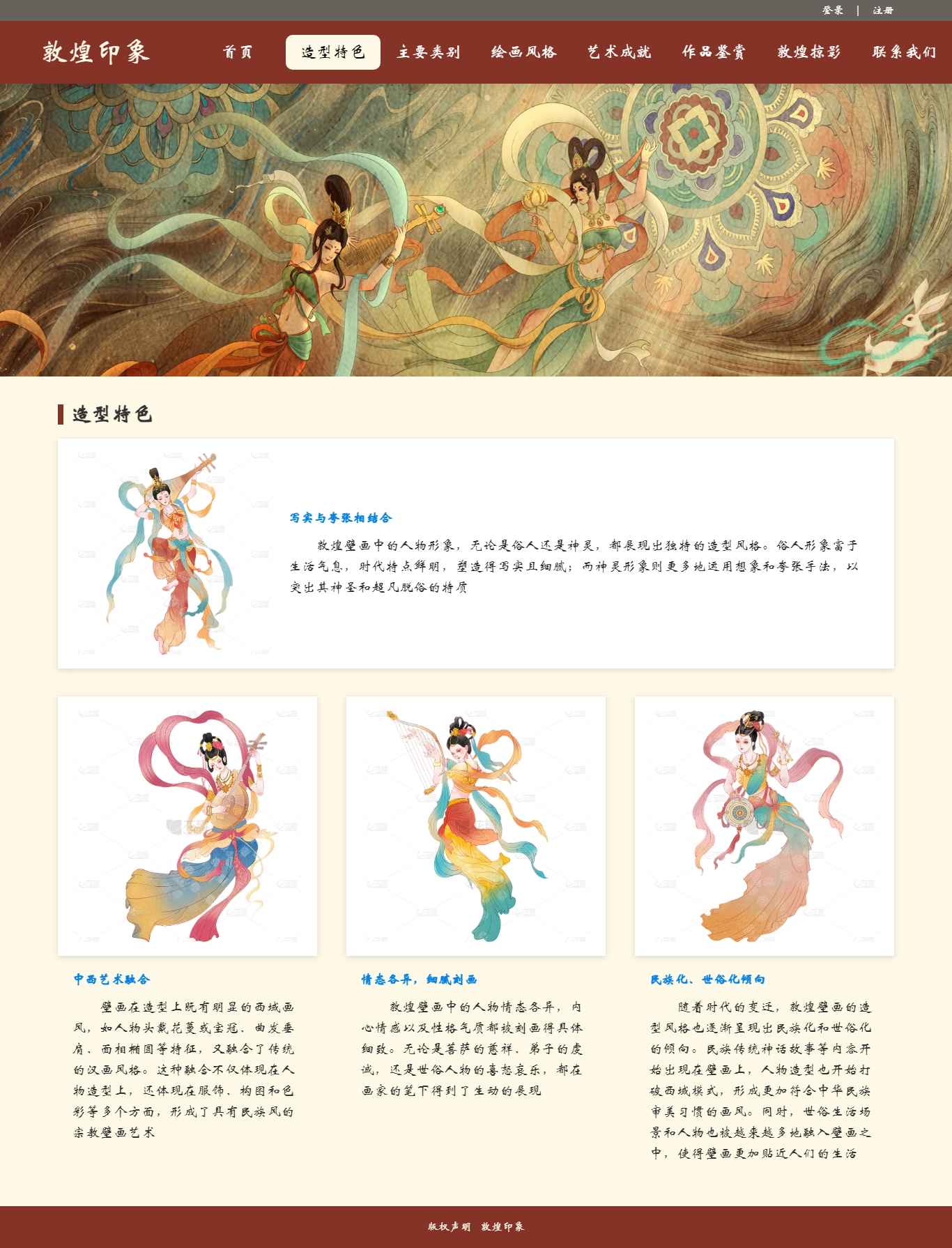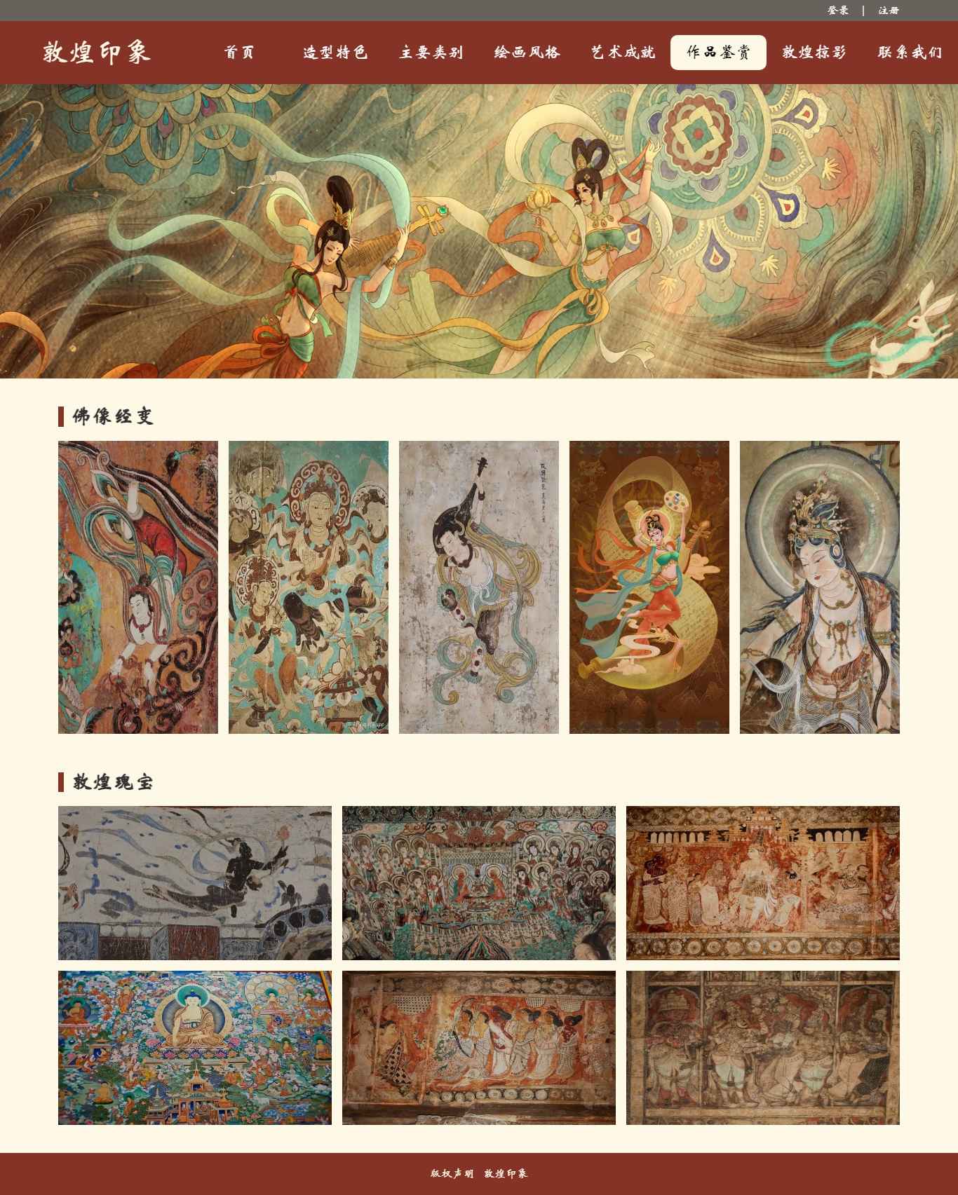 编号:2906 敦煌印象 11页 图片切换 视频 鼠标经过特效 登录 注册 留言表单 50元 css布局
