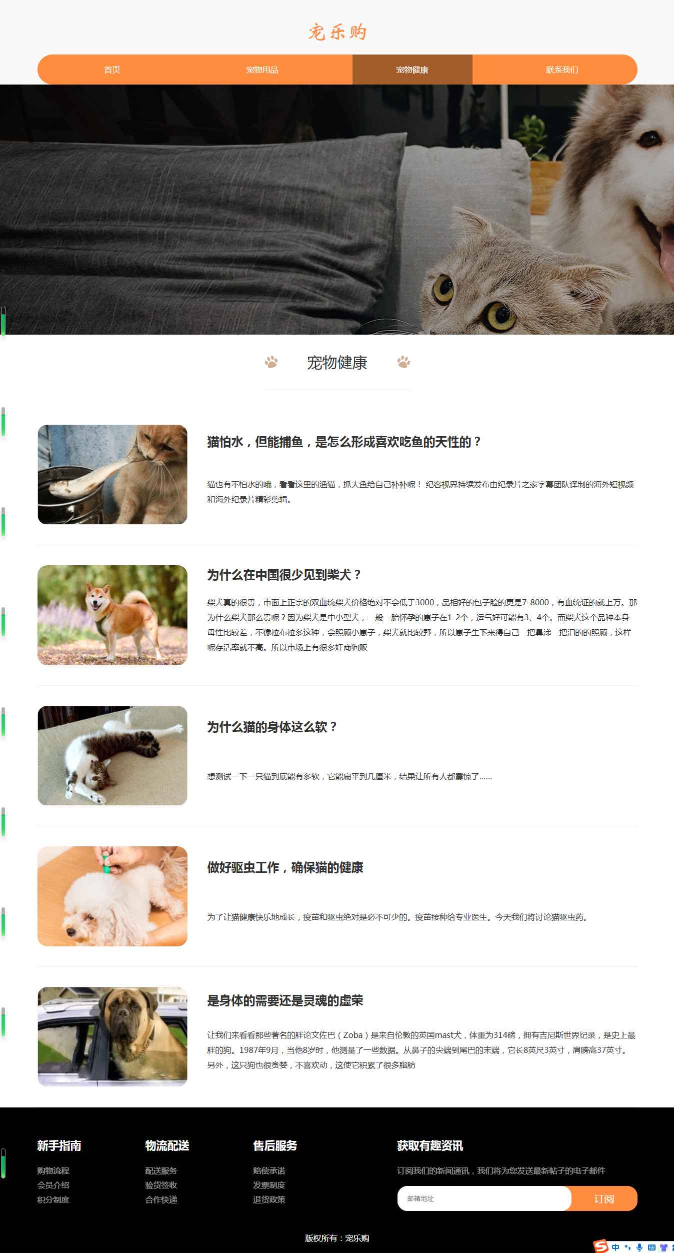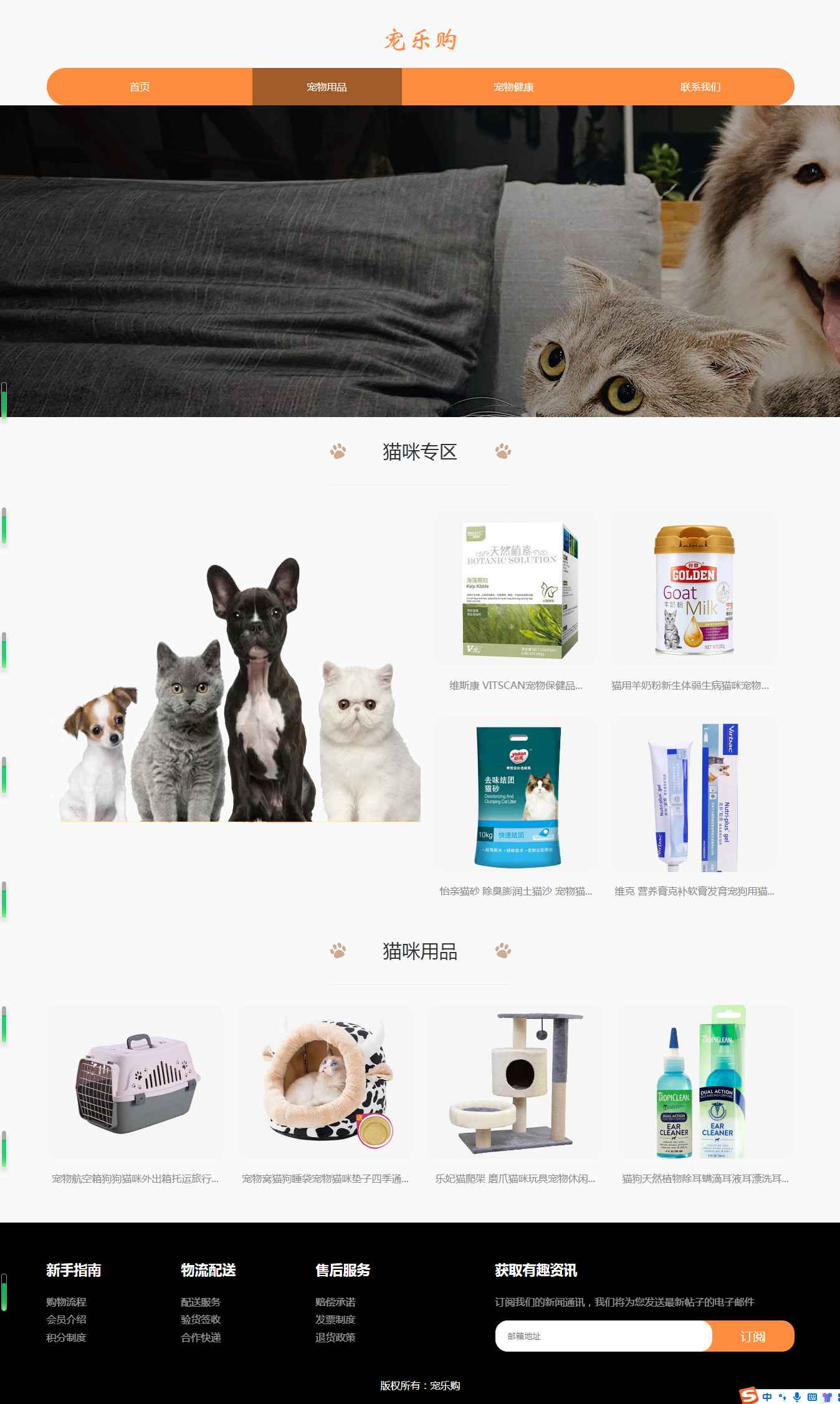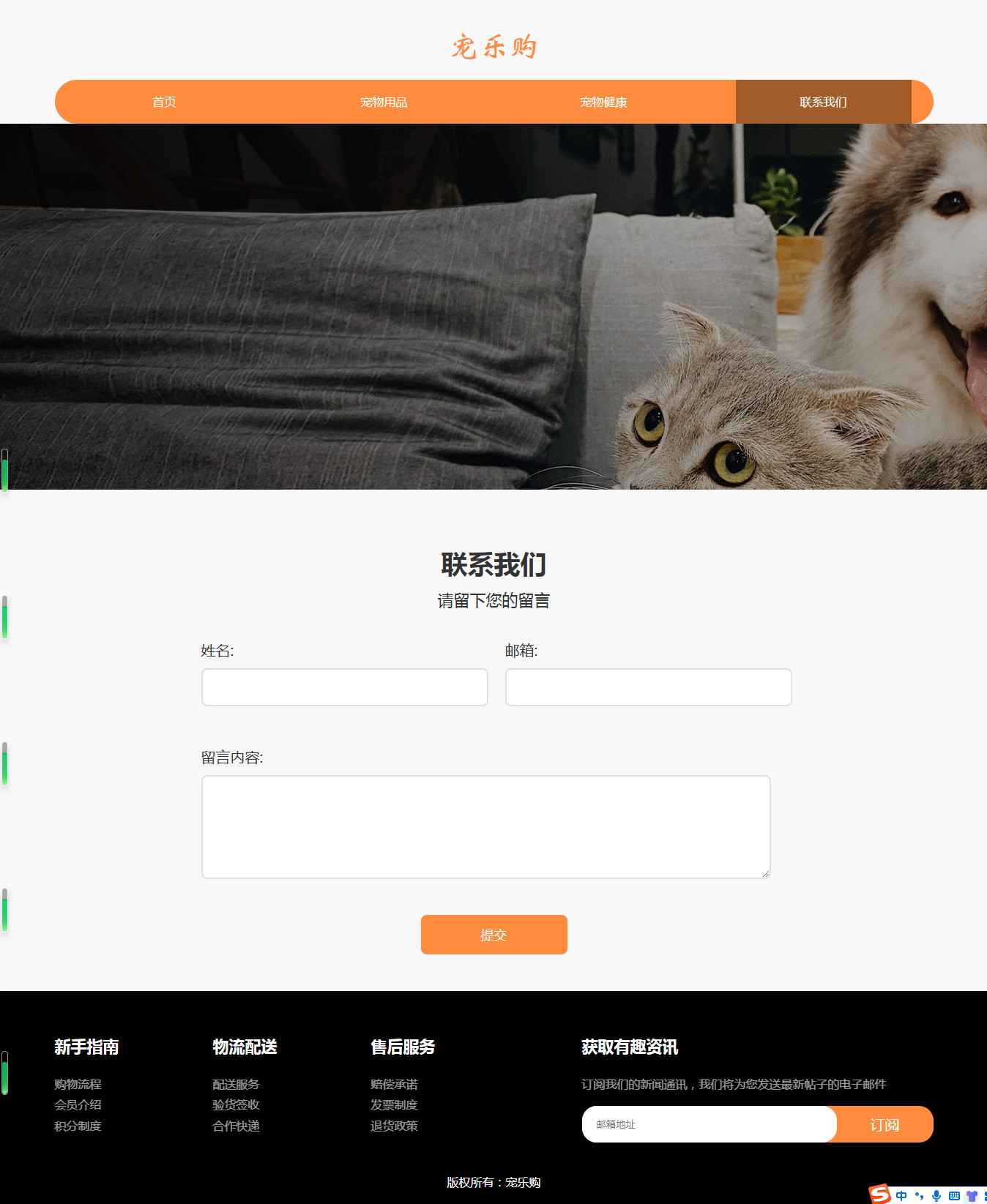 编号:2916 宠乐购宠物 5页 图片切换 留言表单 带设计说明 40元 css布局