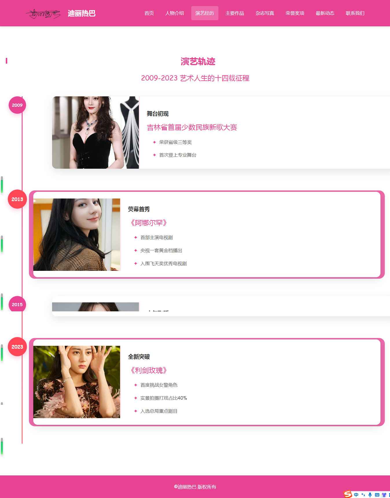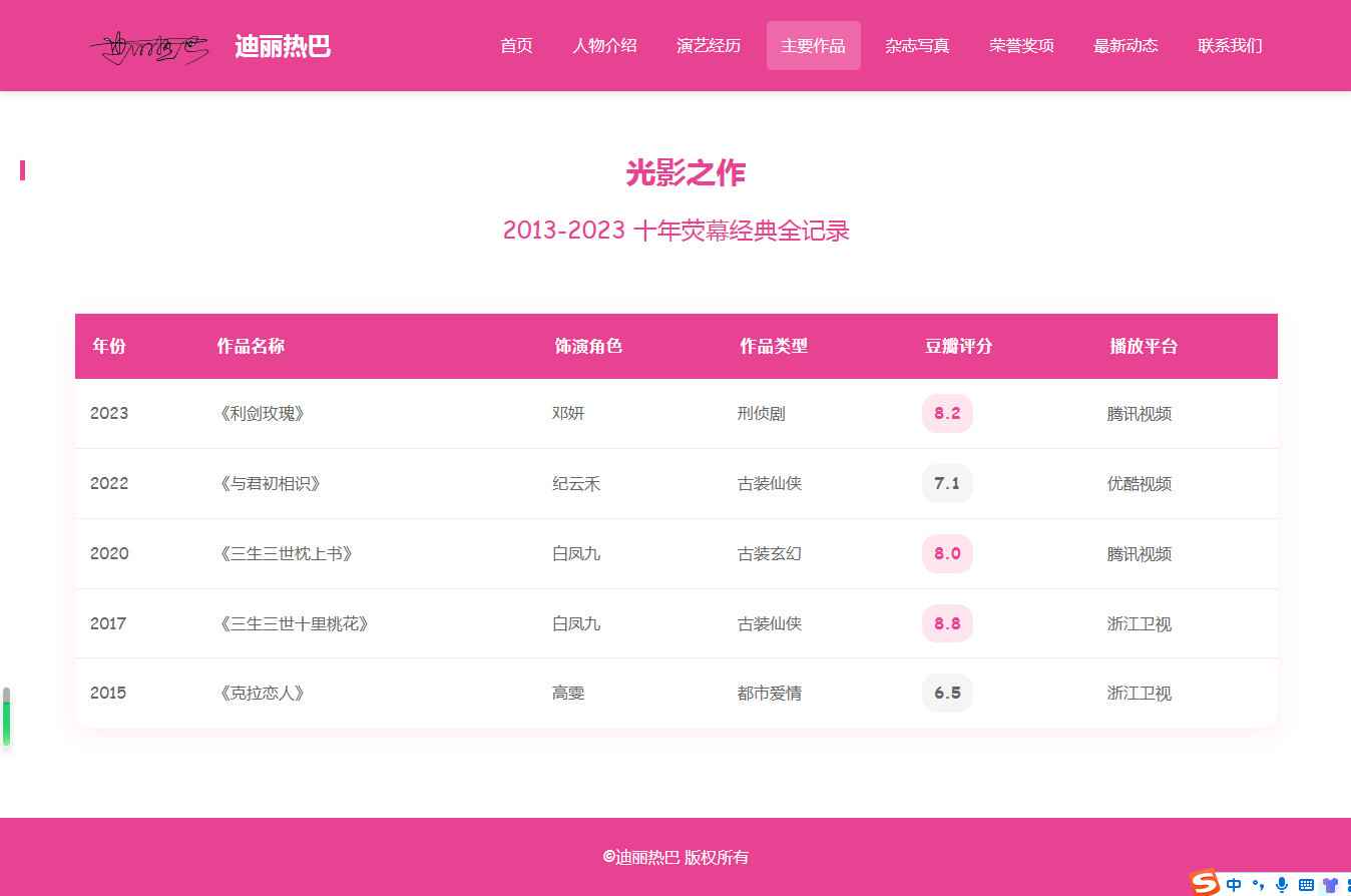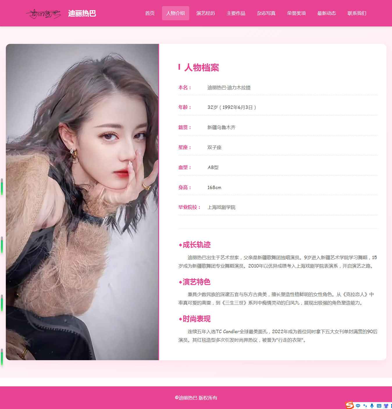 编号:2917 明星迪丽热巴 8页 图片切换 视频 鼠标经过特效 留言表单 带设计说明 40元 css布局