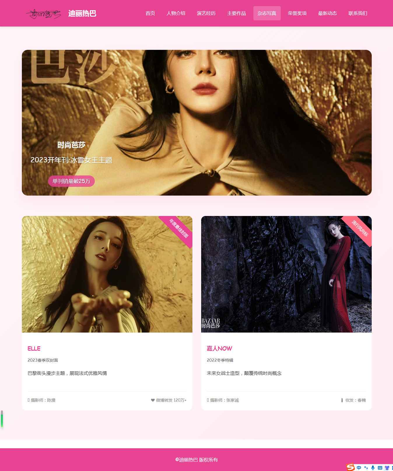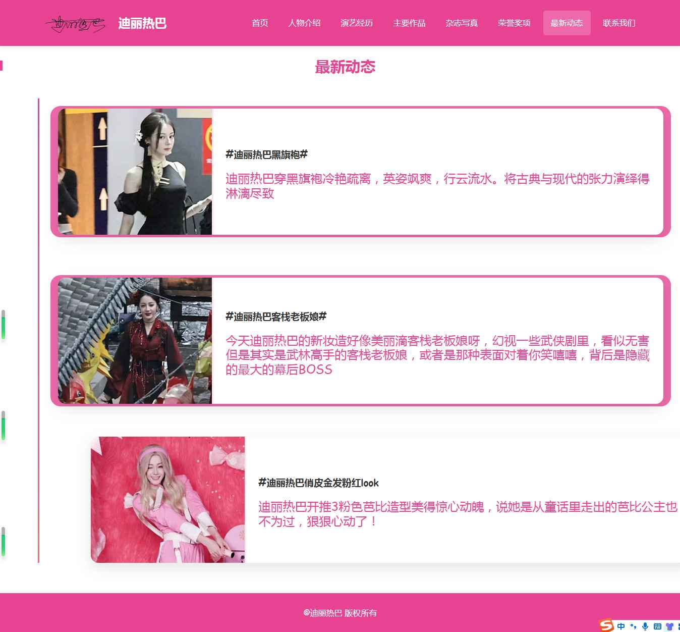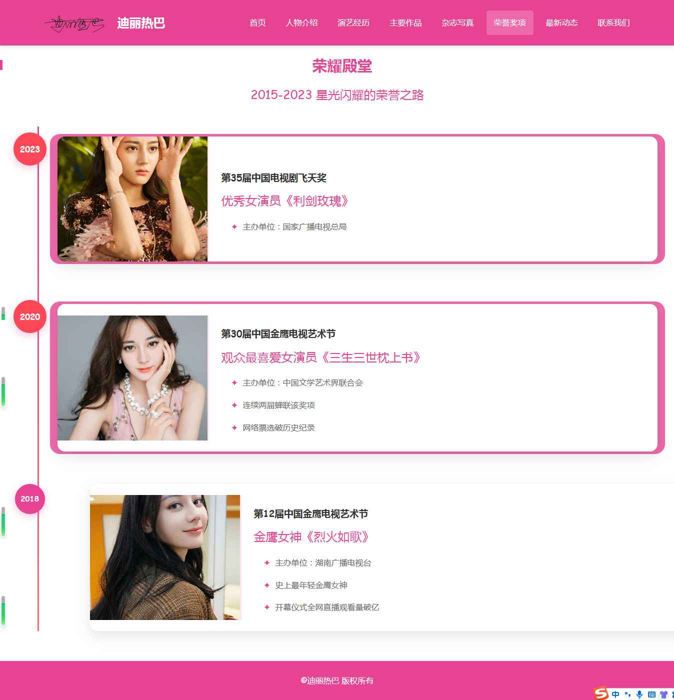 编号:2917 明星迪丽热巴 8页 图片切换 视频 鼠标经过特效 留言表单 带设计说明 40元 css布局