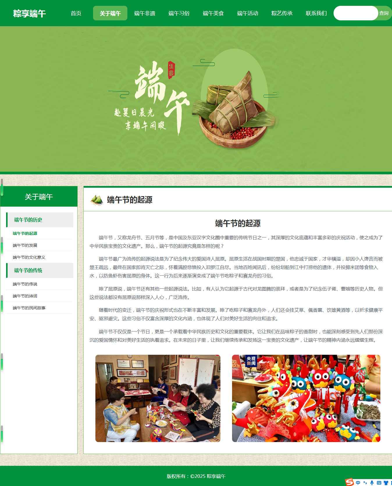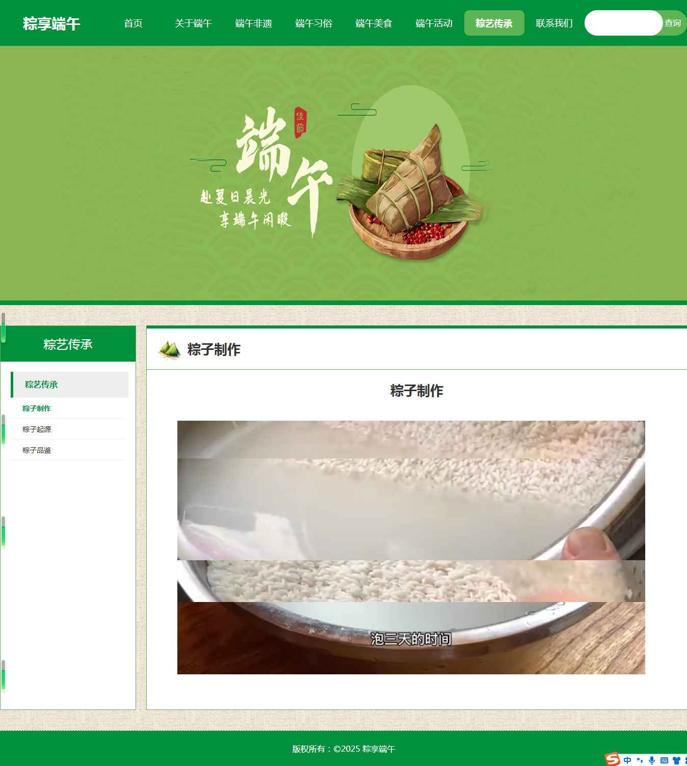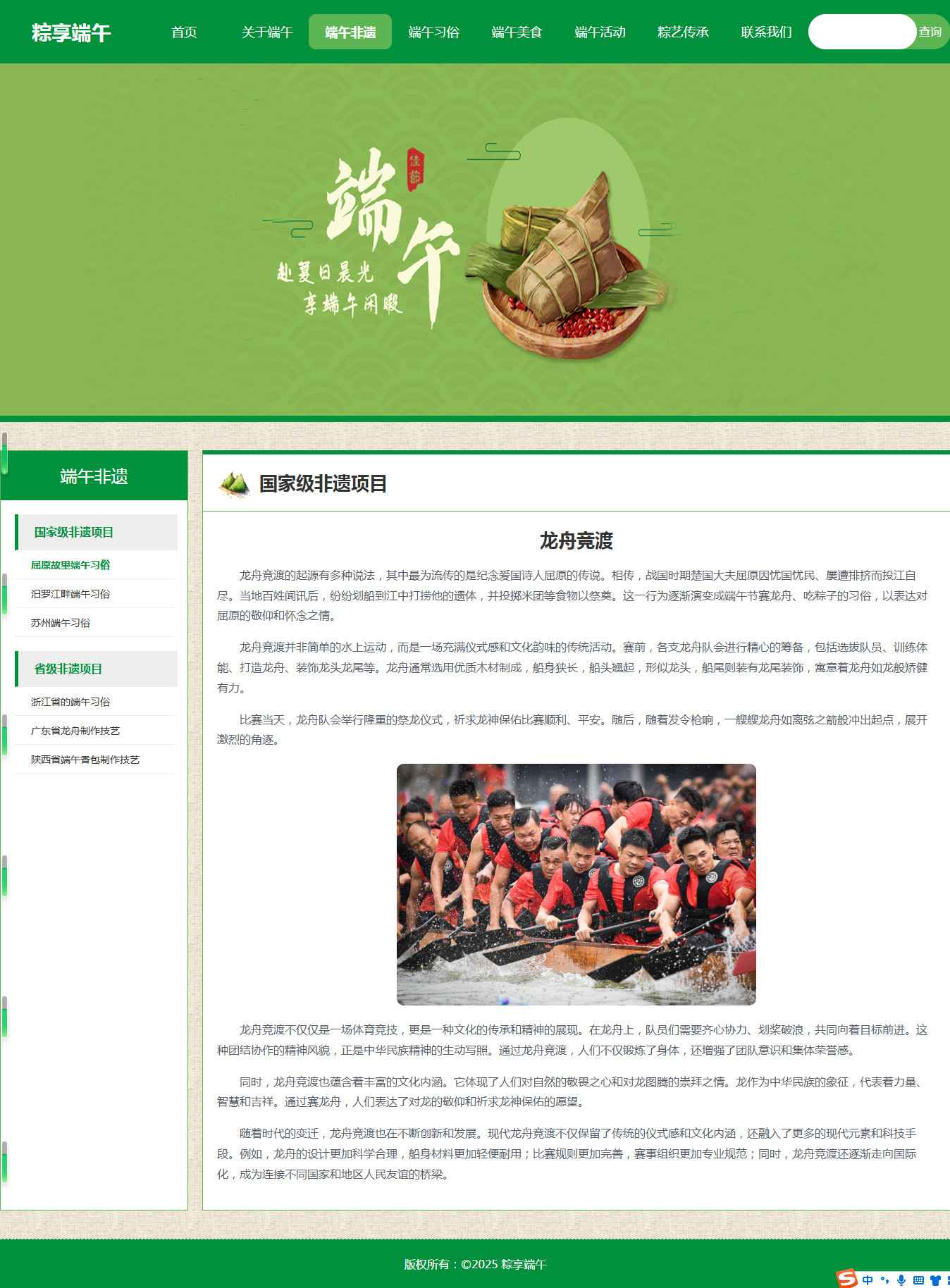 编号:2921 端午节节日 15页 图片轮播 视频 音乐 鼠标经过特效 留言表单 60元 css布局