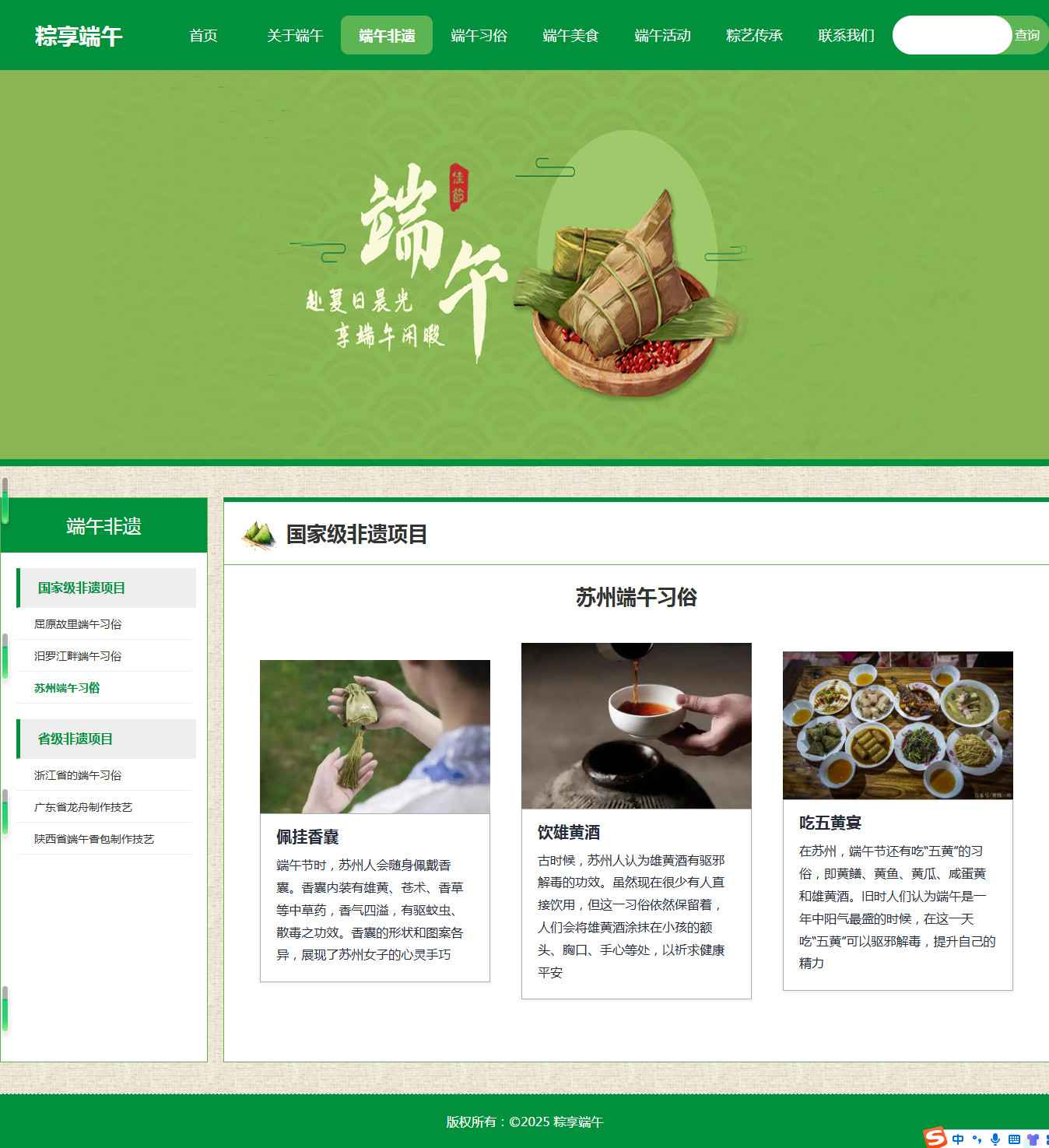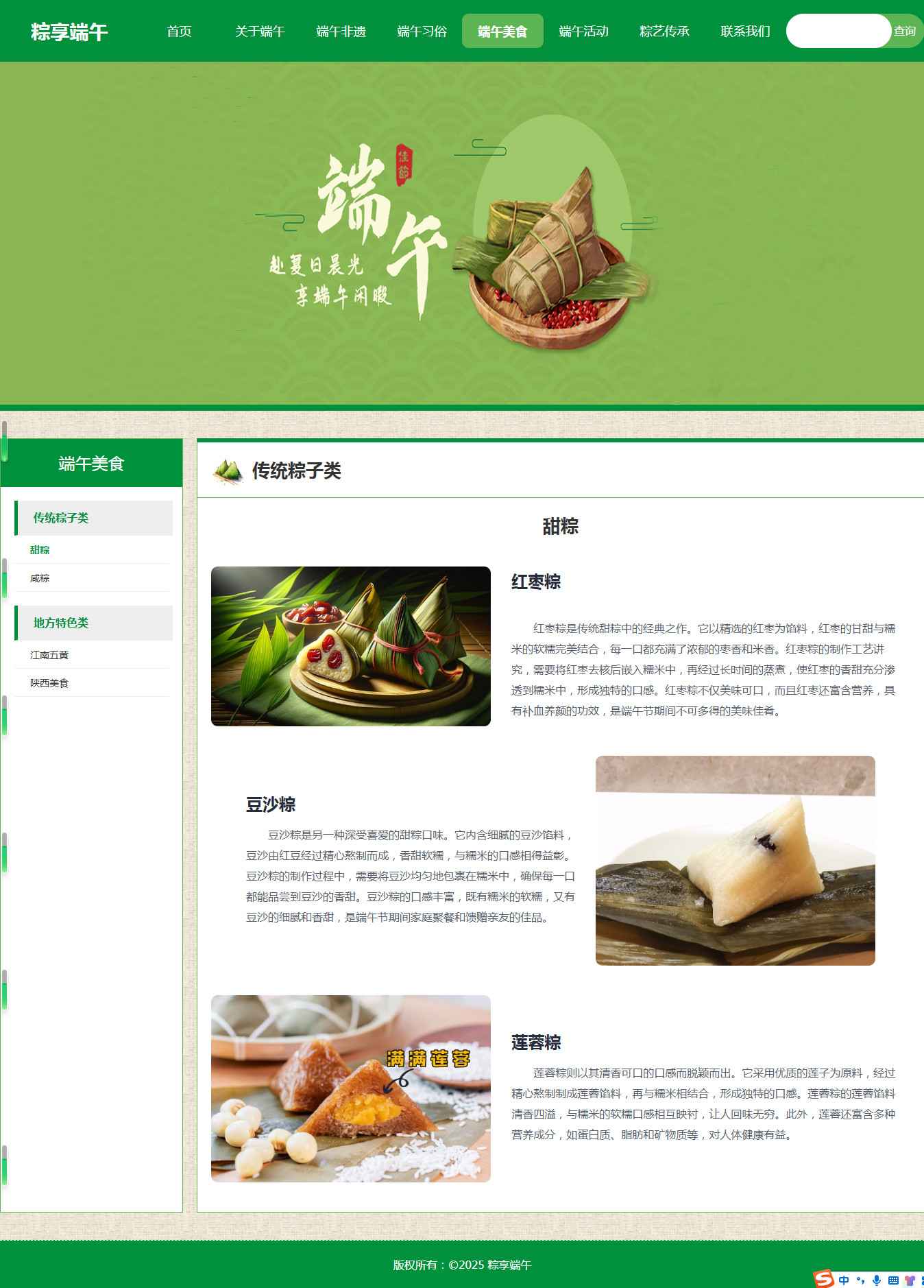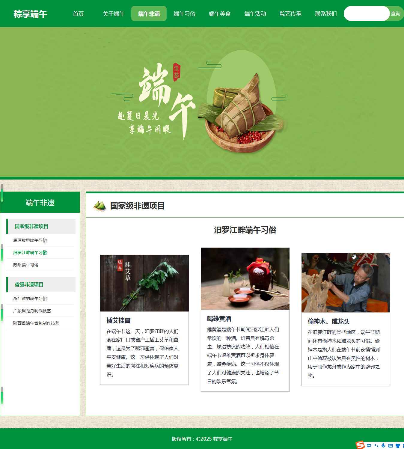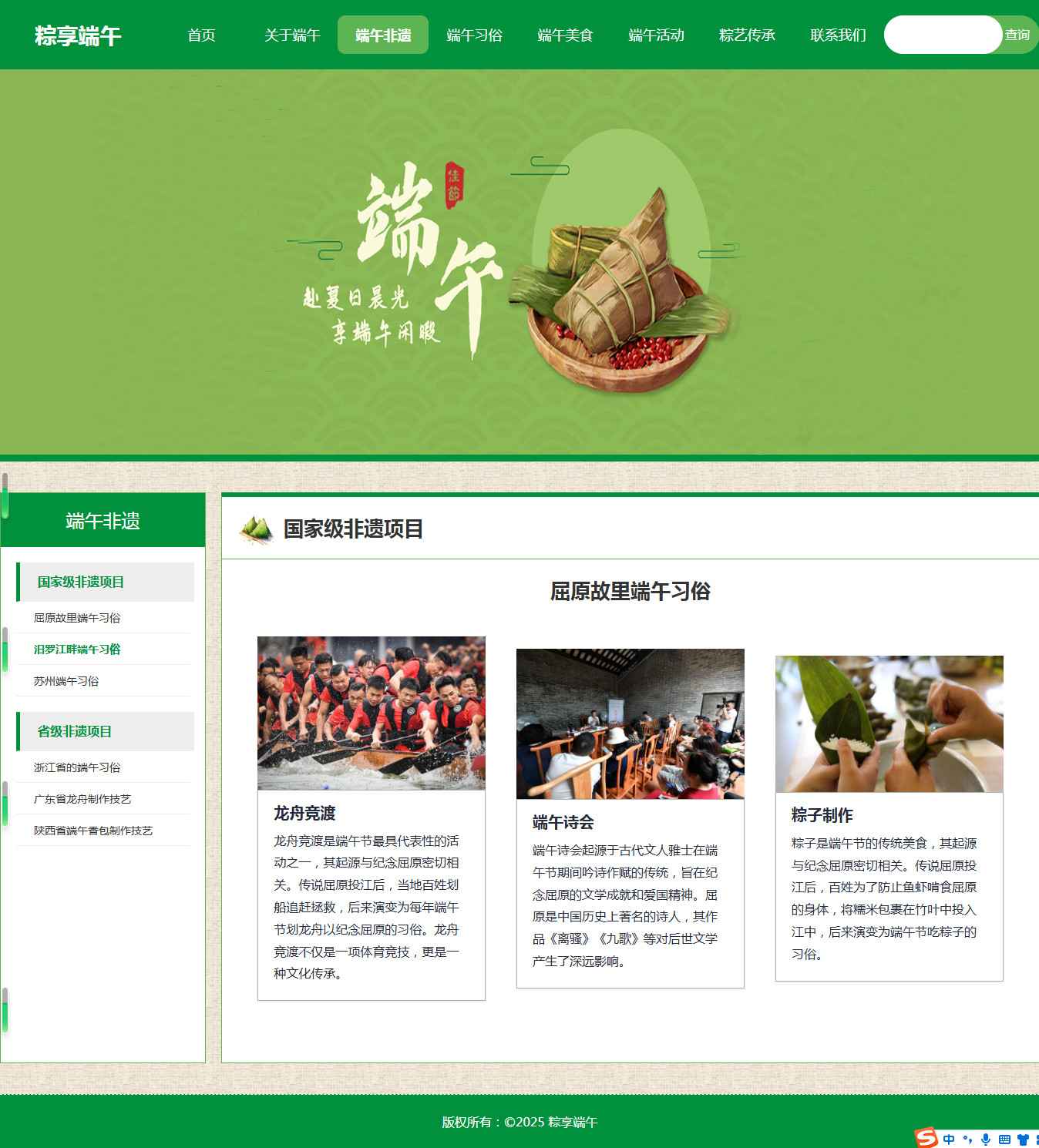 编号:2921 端午节节日 15页 图片轮播 视频 音乐 鼠标经过特效 留言表单 60元 css布局