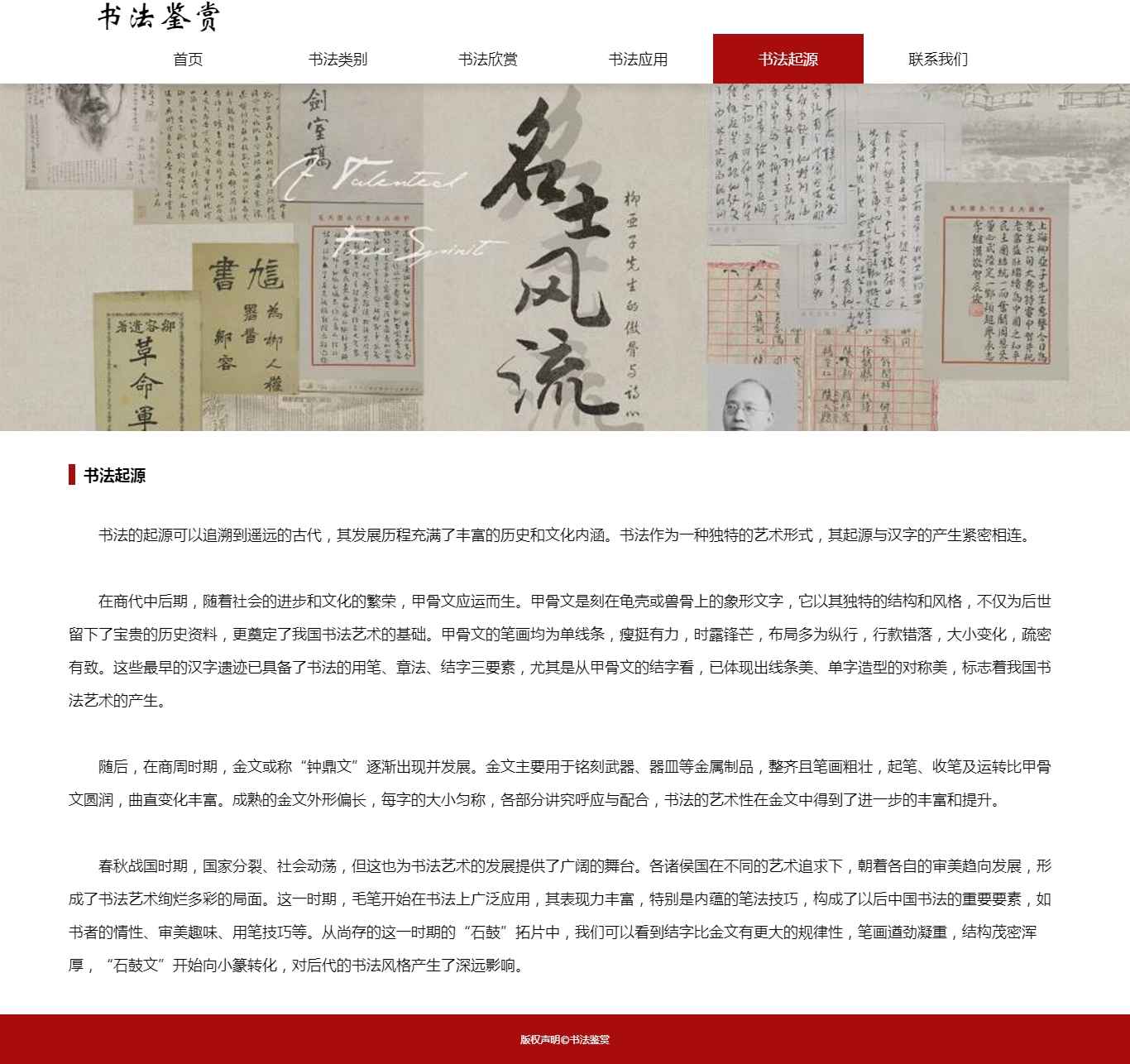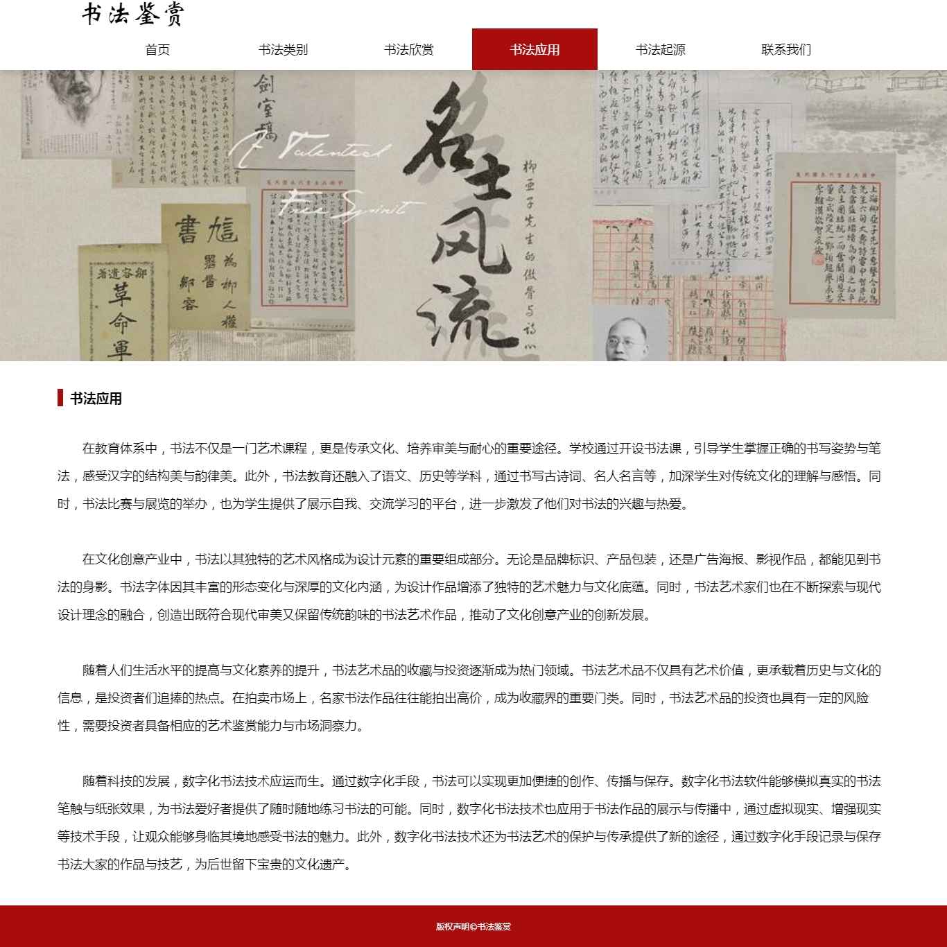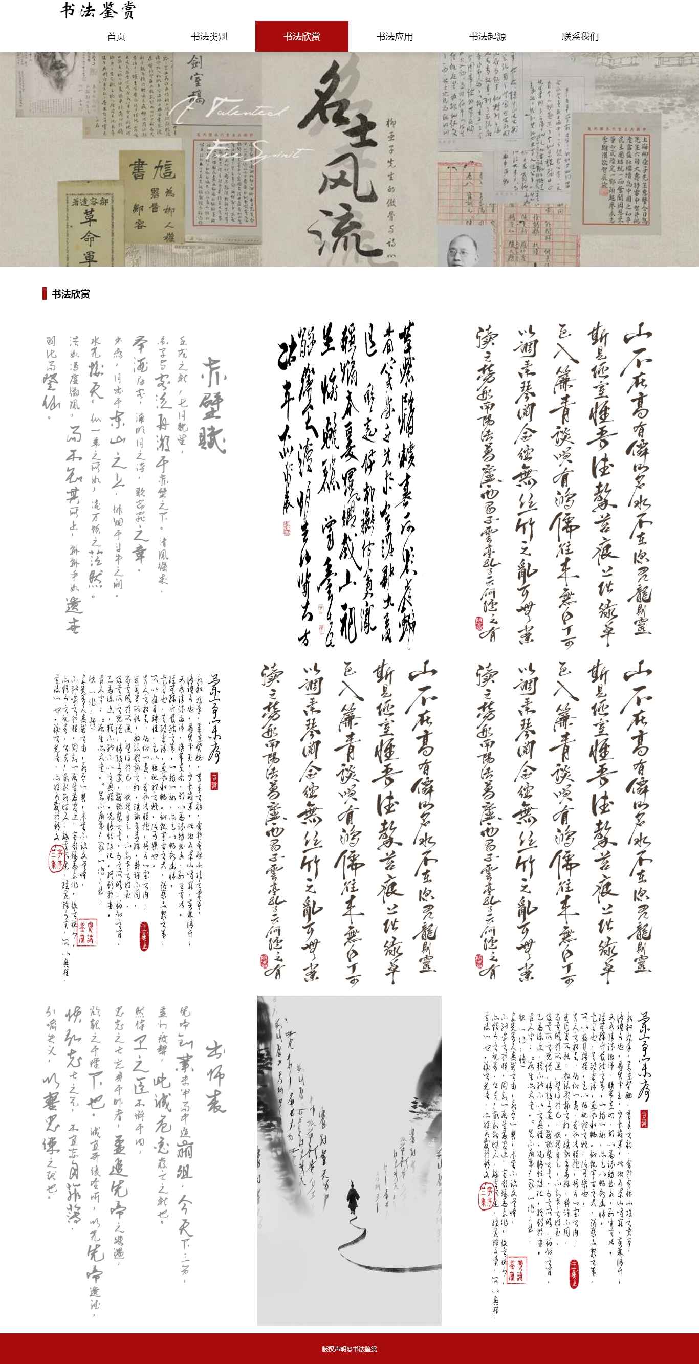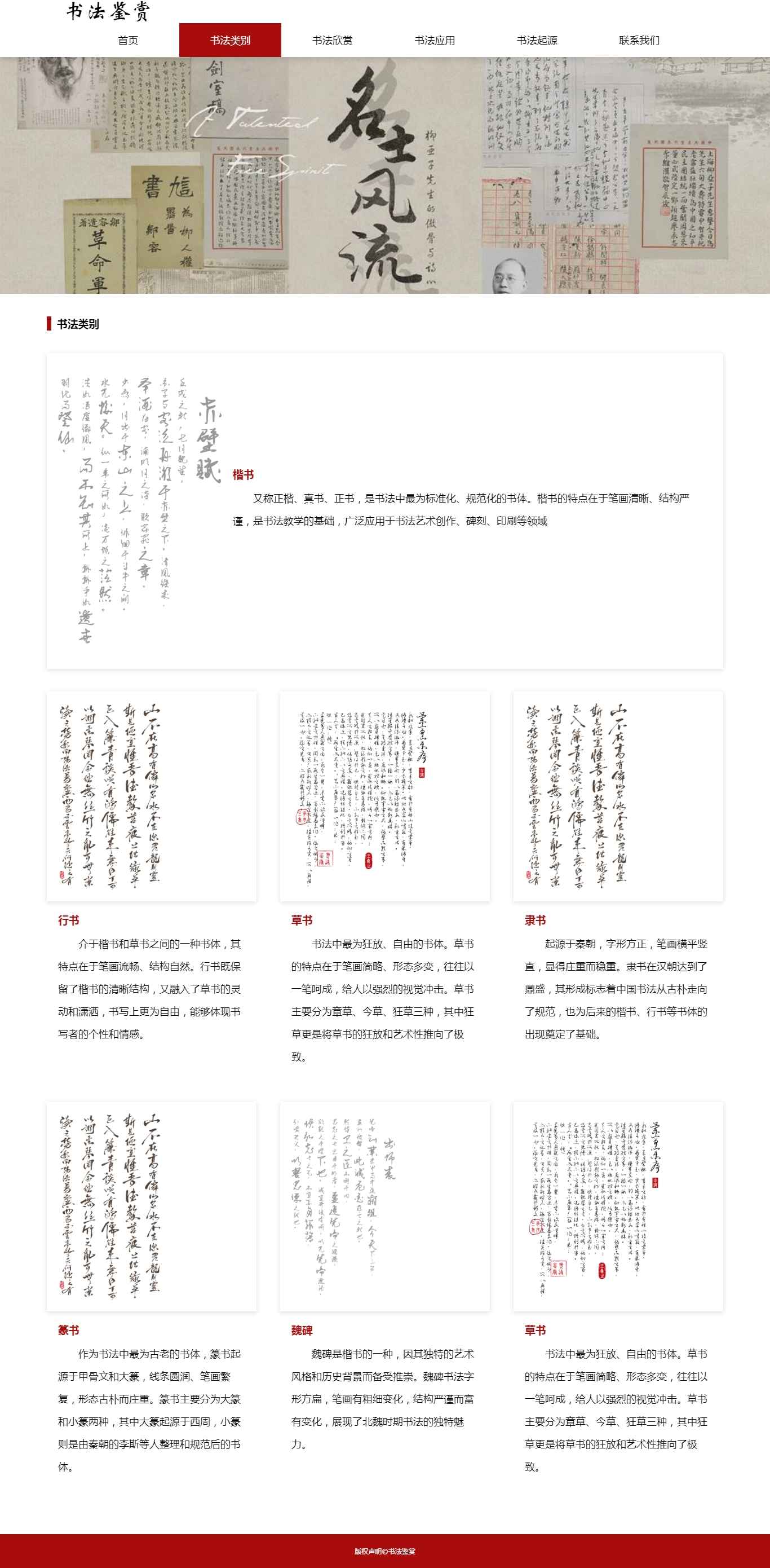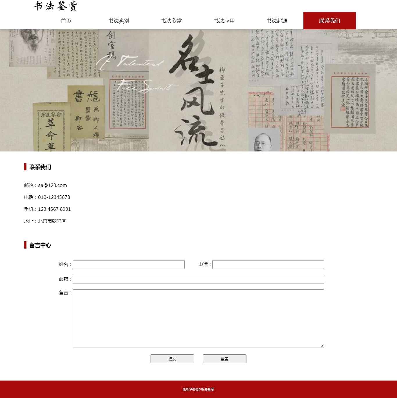 编号:2925 书法 5页 视频 鼠标经过特效 留言表单 30元 css布局