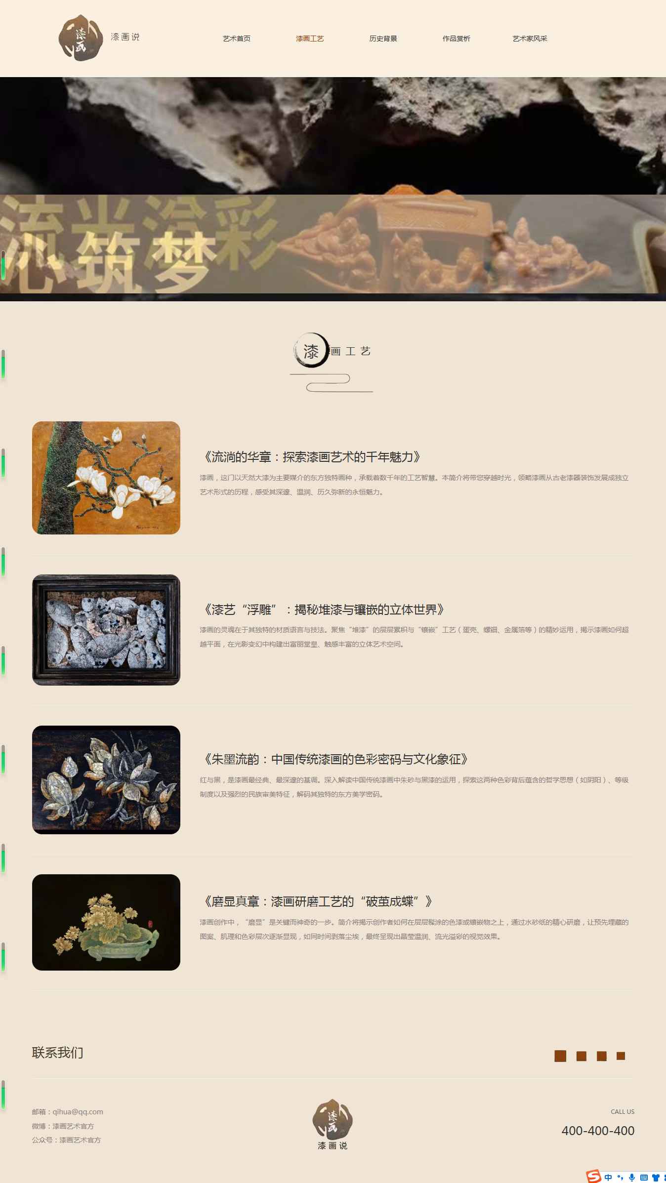 编号:2934 漆画艺术 5页 图片轮播 视频 30元 css布局