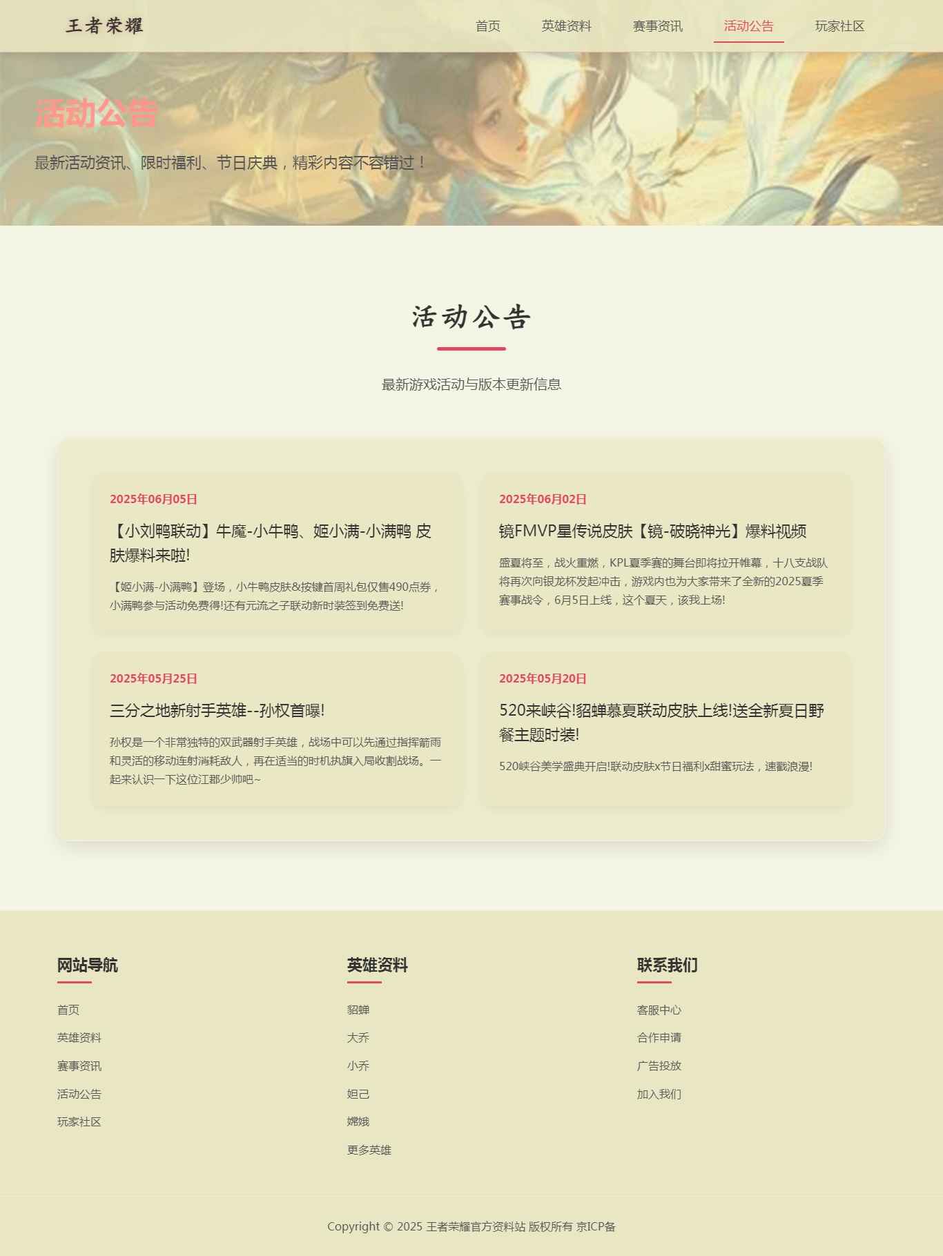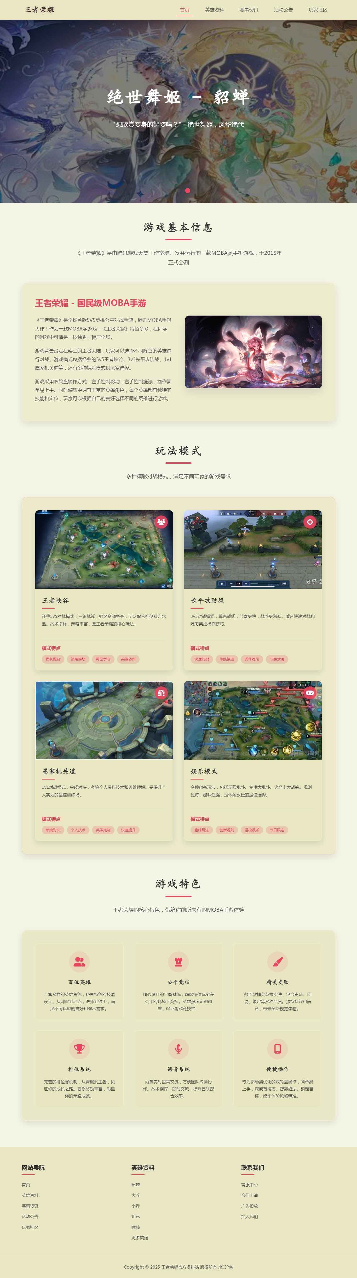 编号:2935 王者荣耀 7页 图片轮播 留言表单 带报告 鼠标经过特效 40元 css布局