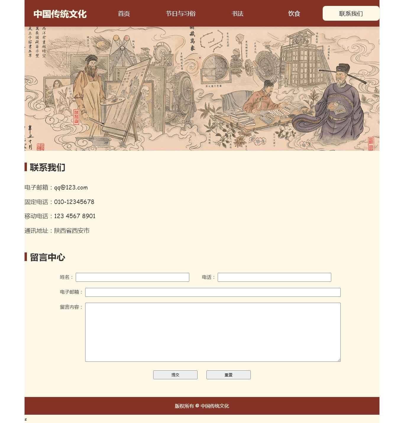 编号:2938 中国传统文化 5页 图片轮播 鼠标经过特效 留言表单 30元 css布局