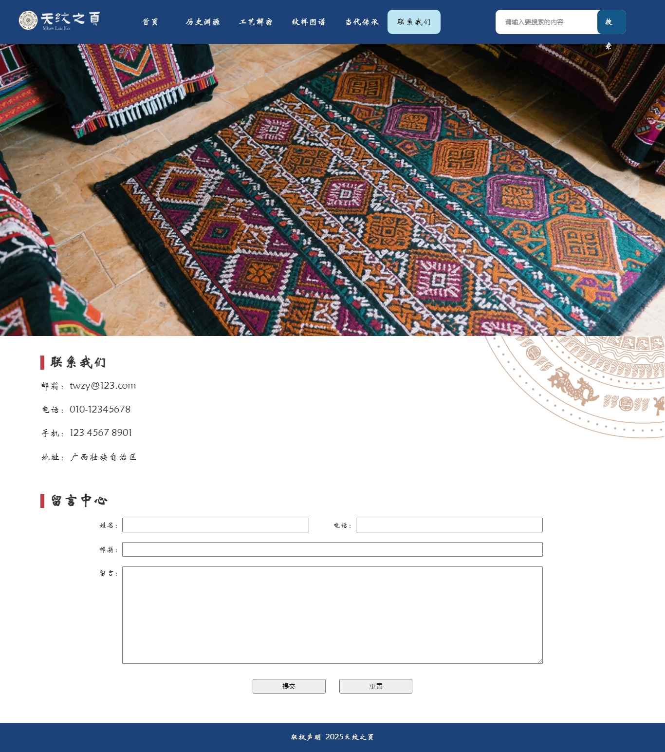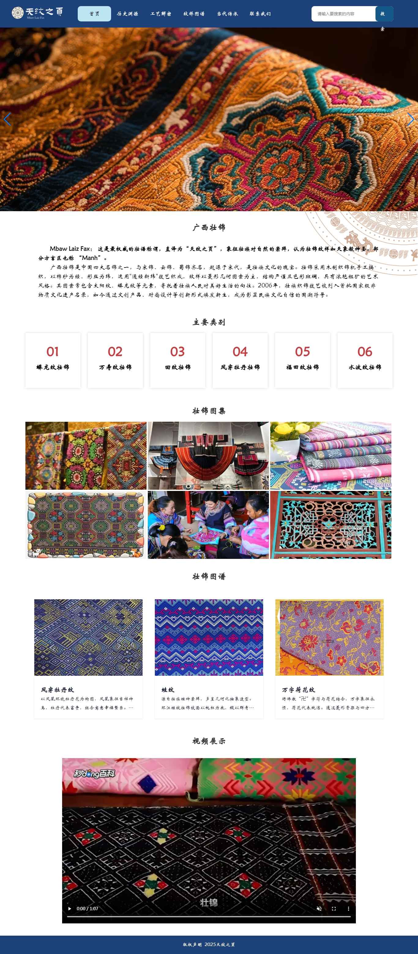 编号:2940 广西壮锦 6页 图片轮播 视频 鼠标经过特效 留言表单 30元 css布局