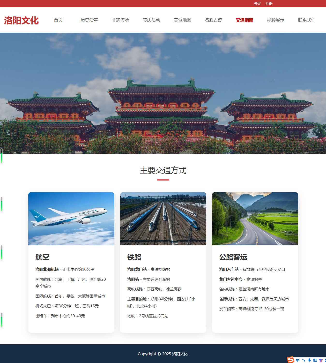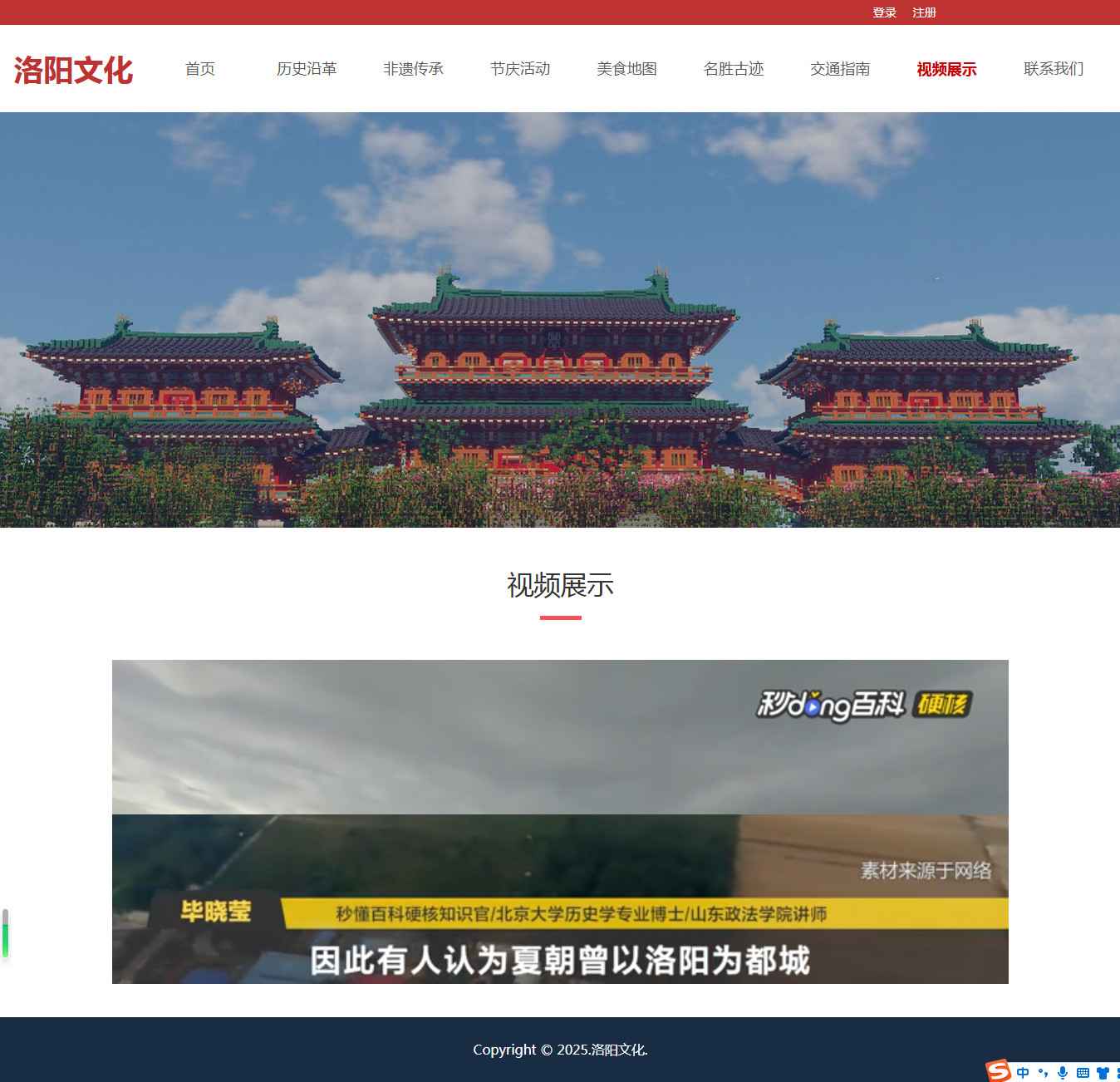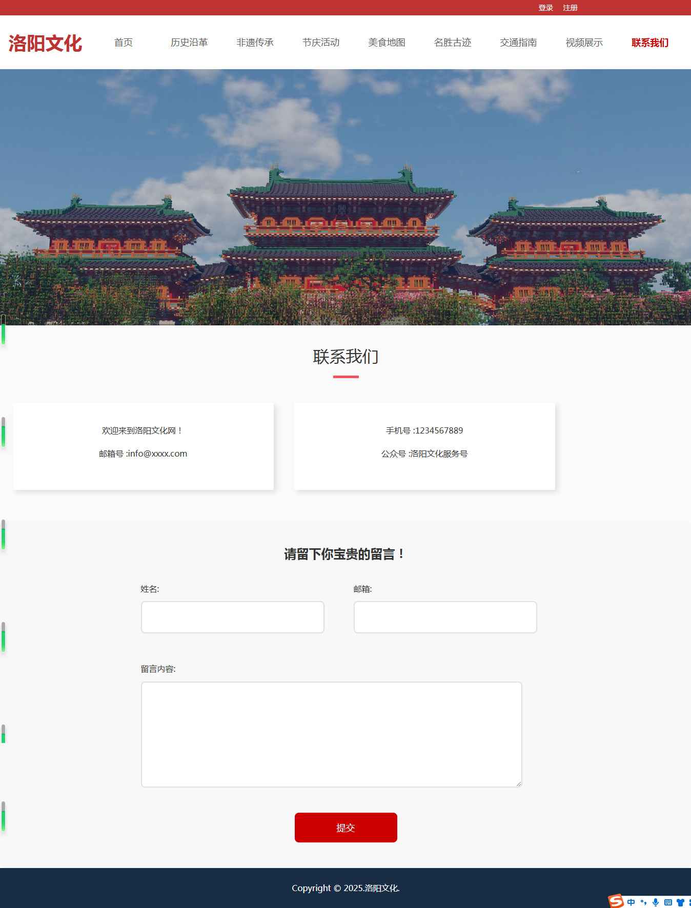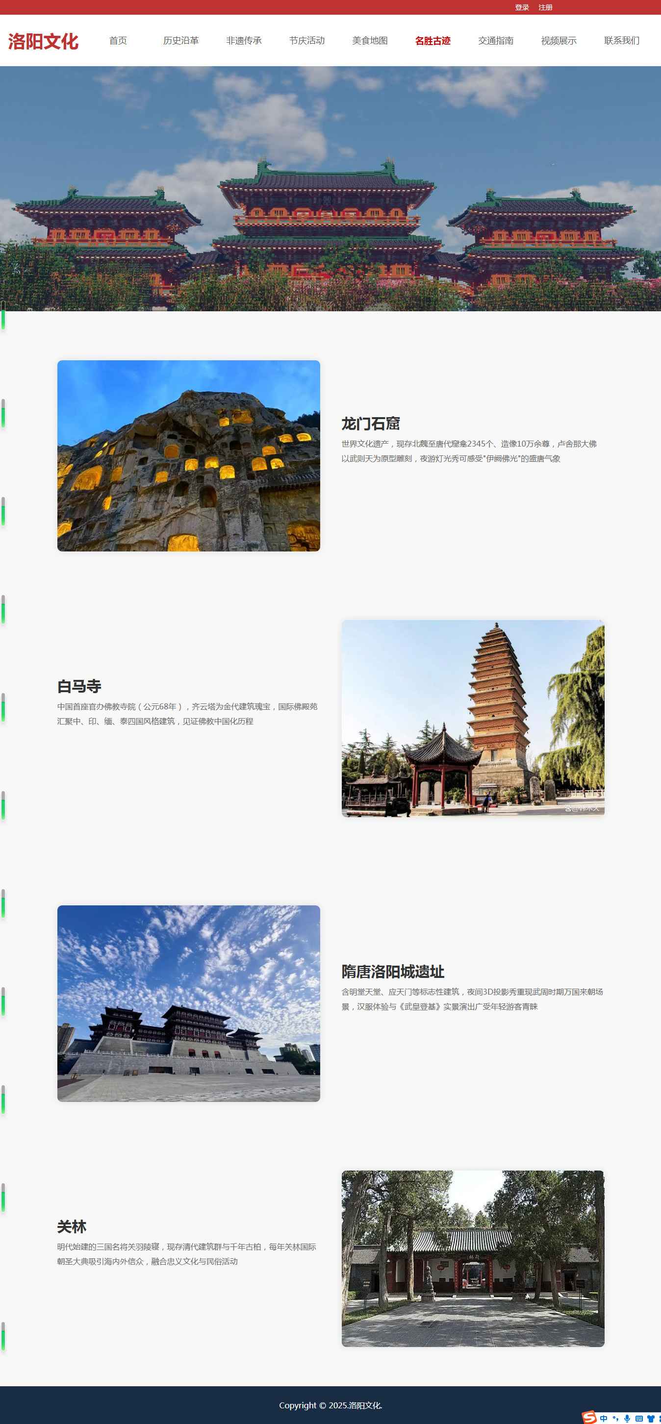 编号:2942 河南洛阳旅游 12页 图片轮播 视频 登录注册 留言表单 鼠标经过特效 html5 60元 css布局