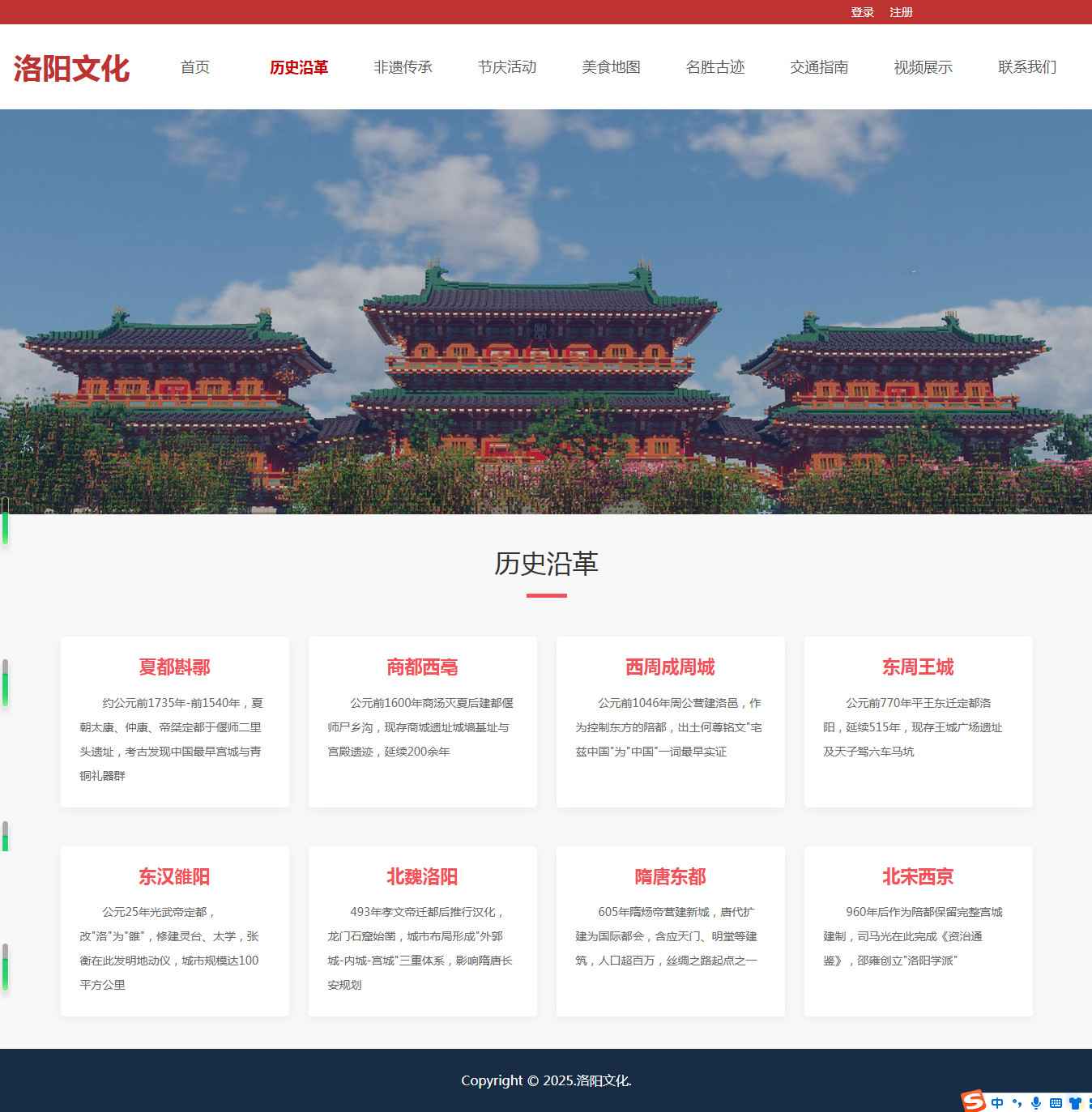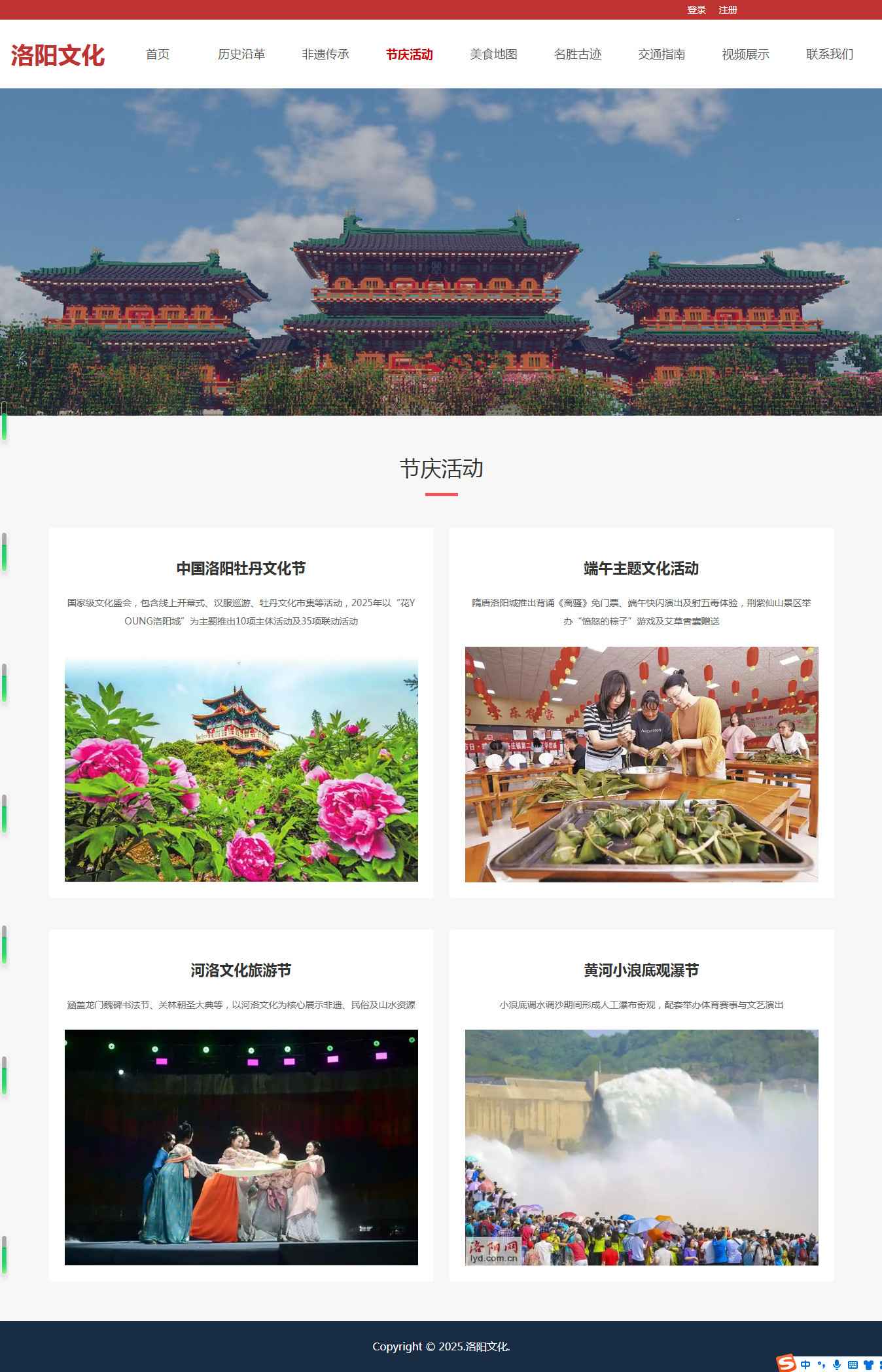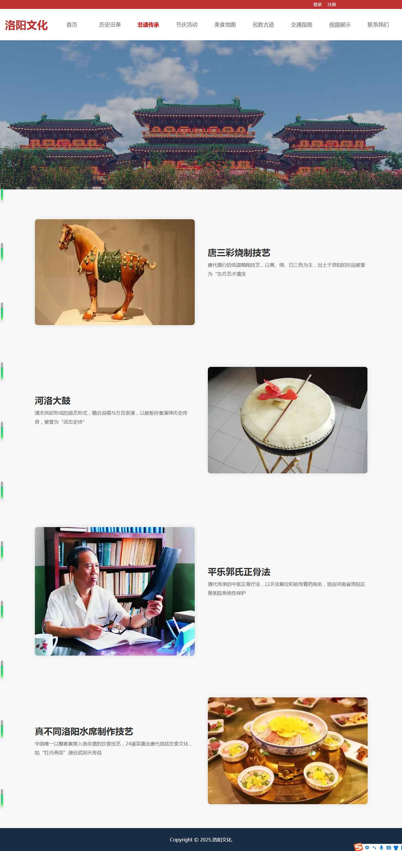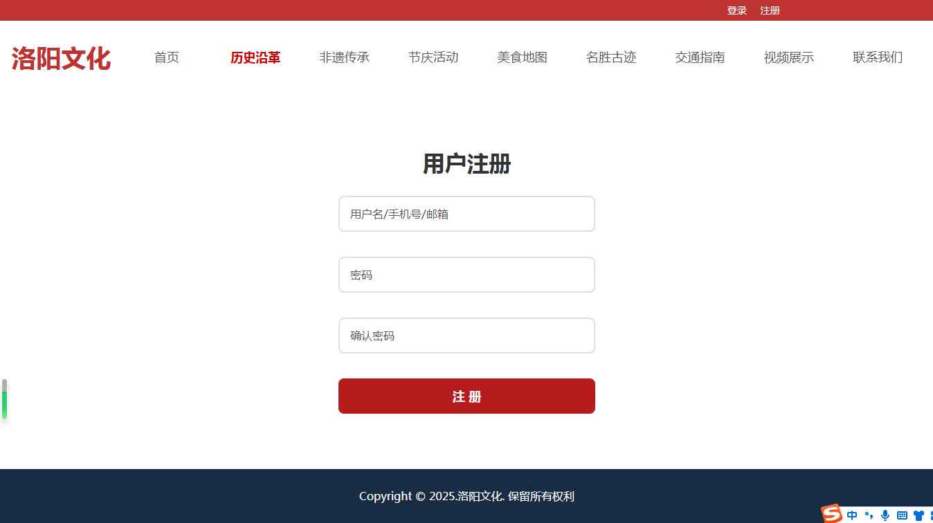 编号:2942 河南洛阳旅游 12页 图片轮播 视频 登录注册 留言表单 鼠标经过特效 html5 60元 css布局
