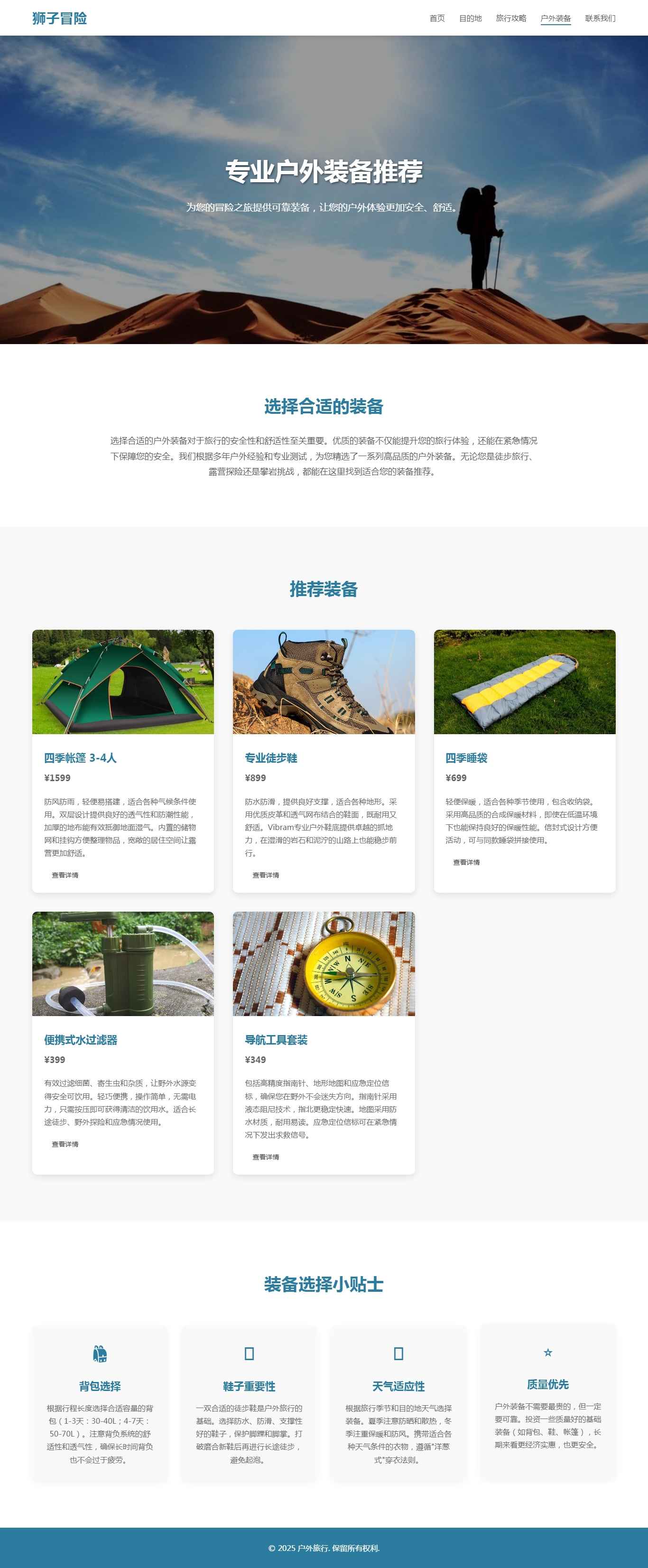 编号:2954 户外探险 5页 响应式页面设计flex等 留言表单 带PPT说明 40元 css布局