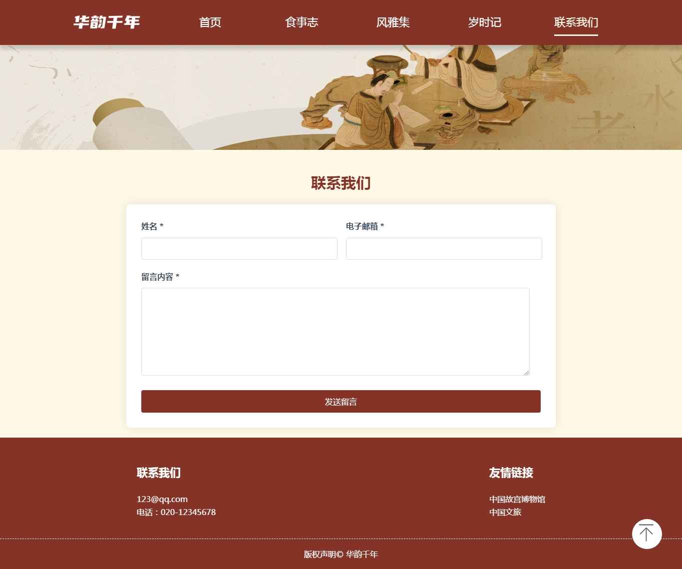 编号:2955 华韵中华文化 5页 轮播 鼠标经过特效 留言表单 带PPT说明 40元 css布局