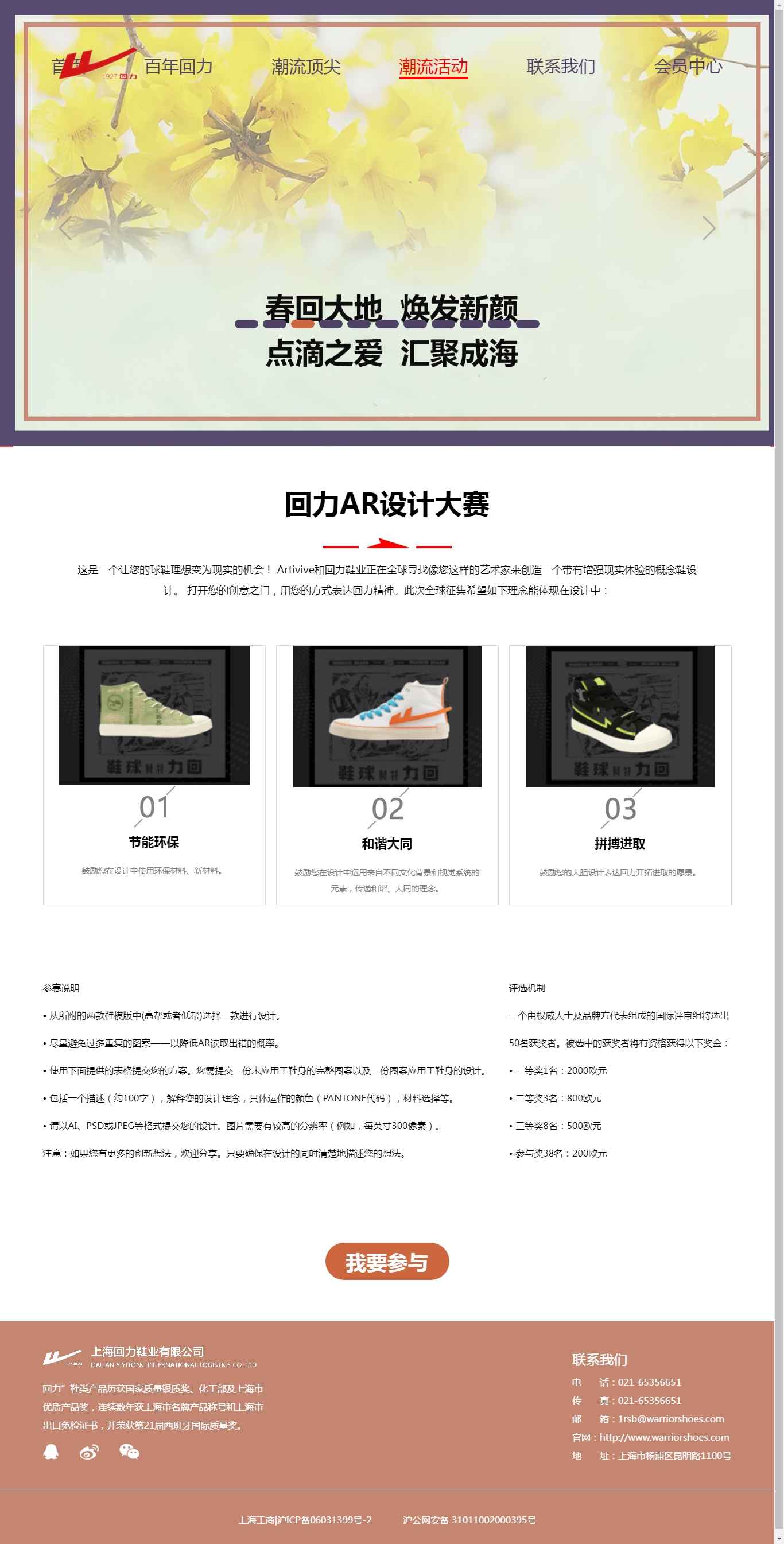 编号:2957 鞋子品牌回力 12页 轮播 下拉菜单 留言表单 50元 css布局