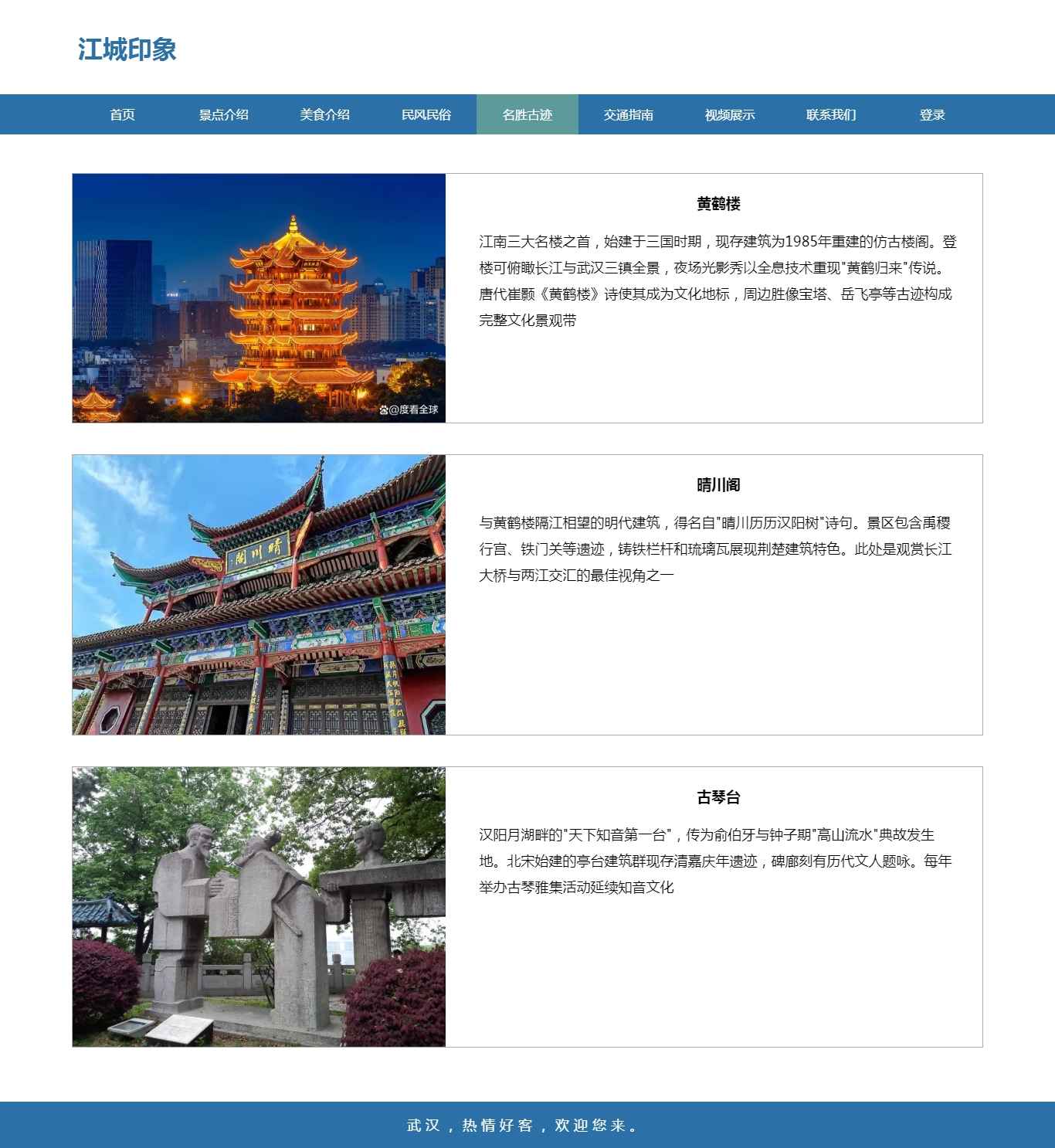 编号:2959 武汉印象 10页 轮播 视频 登录 留言表单 50元 css布局