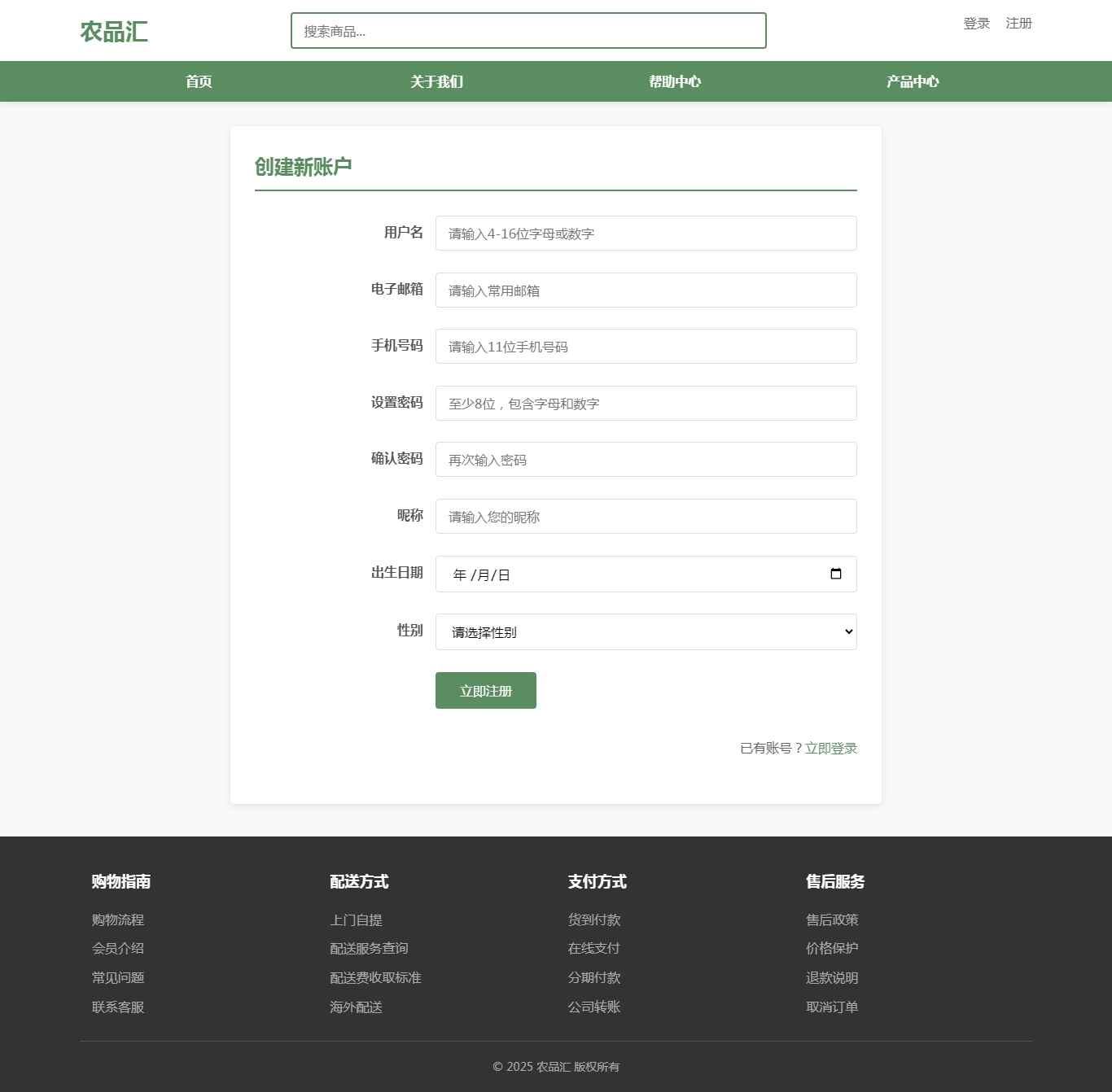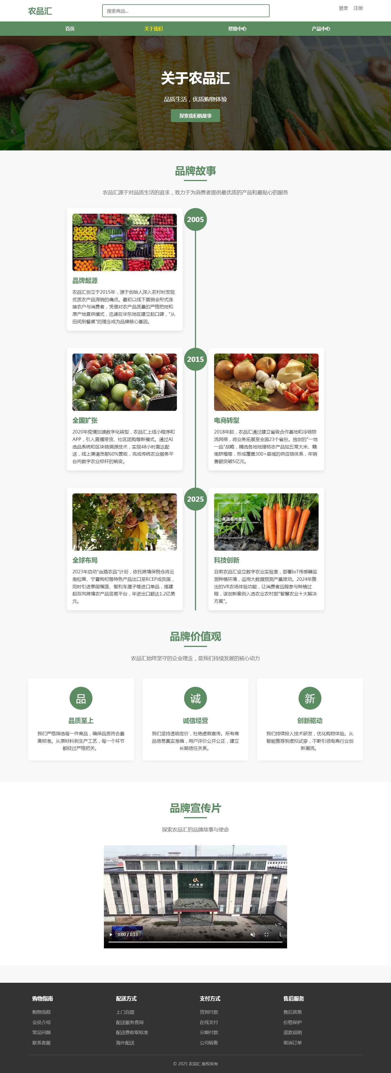 编号:2968 农品汇农副产品商城 10页 轮播 视频 登录 注册额表单 鼠标经过特效 50元 css布局